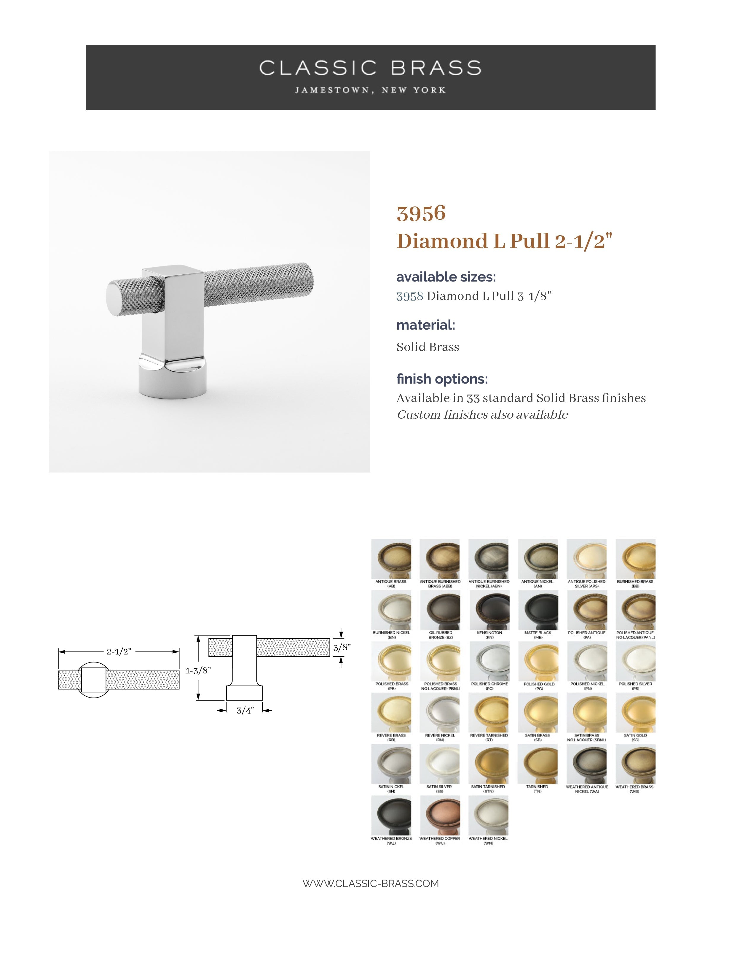 3956, L Pull - 2-1/2" Diamond, Classic Brass Apres Collection