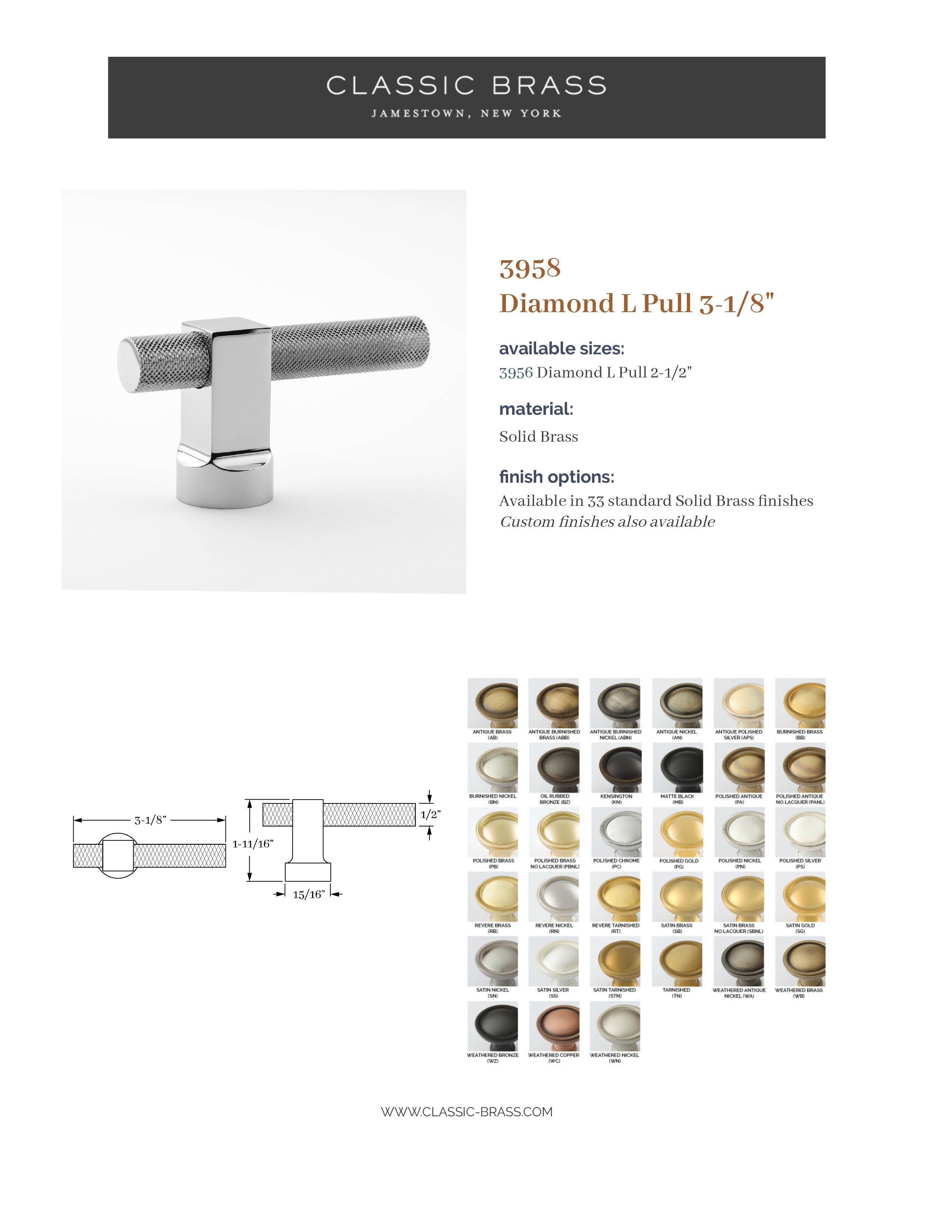 3958, L Pull - 3-1/8" Diamond, Classic Brass Apres Collection