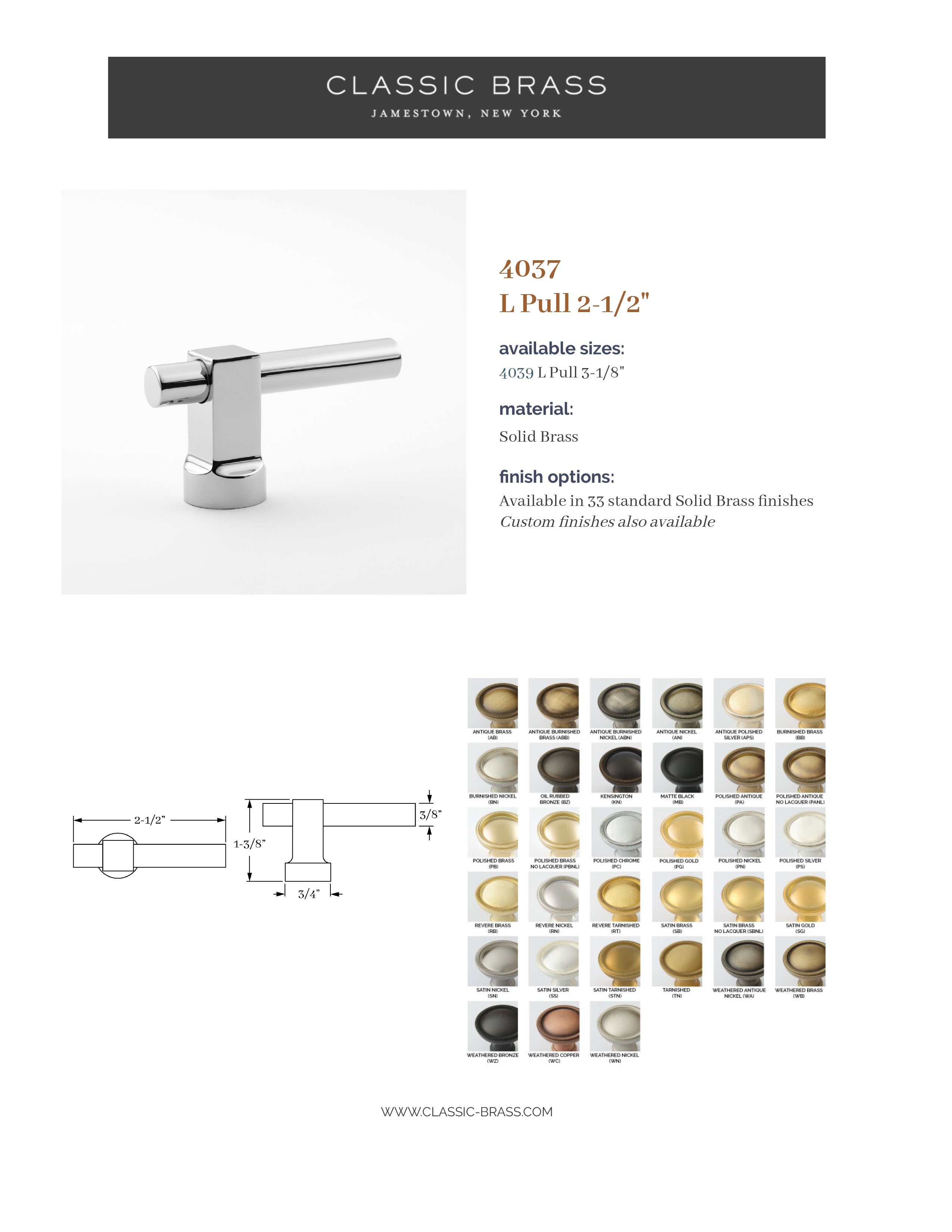 4037, L Pull - 2-1/2", Classic Brass Reverie Collection