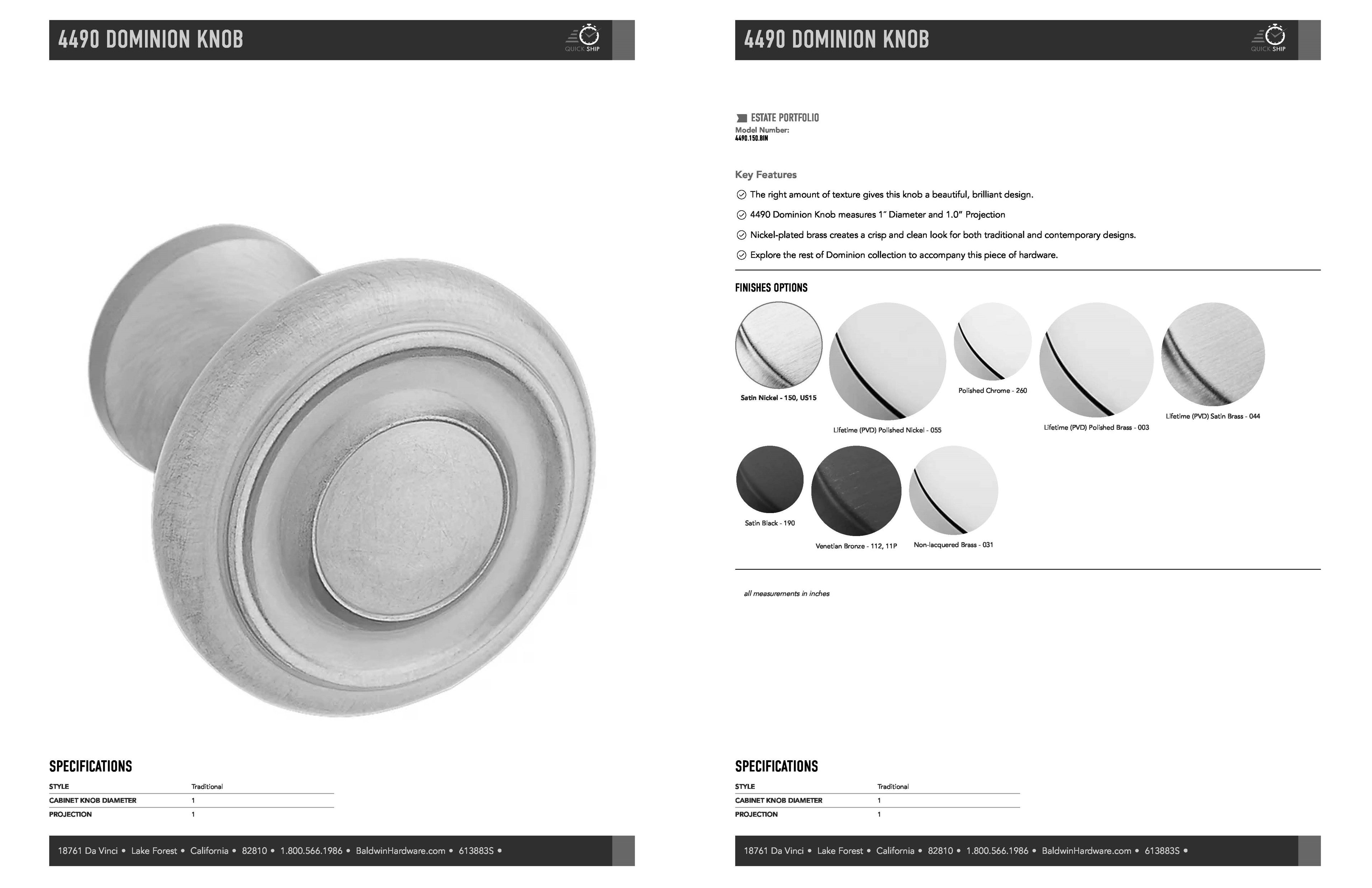 Dominion Collection | Style: Traditional | Category: Cabinet | Sub Category: Knob | Material: Brass | Size: 1" d. x 1.0" p. | Made in USA | Usually Ships 2-3 Weeks