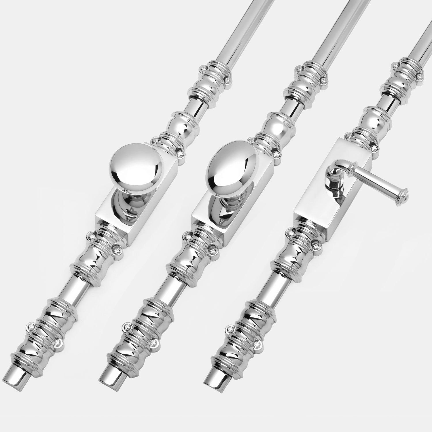 Cabinet Cremones | Style: Traditional | Category: Cabinet | Sub Category: Cabinet Cremone | Material: Brass | Size: 1-3/8" x 6-7/8" Round | Made in USA | Usually Ships