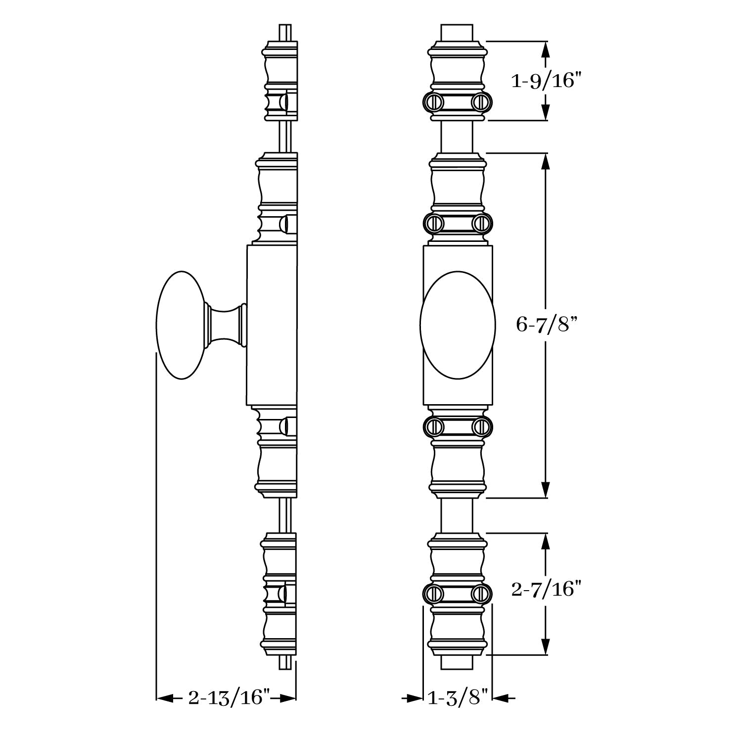 3270, Cabinet Cremone w/ Oval Knob - Half Dummy - 1-3/8" x 6-7/8" Round, Cabinet Cremones