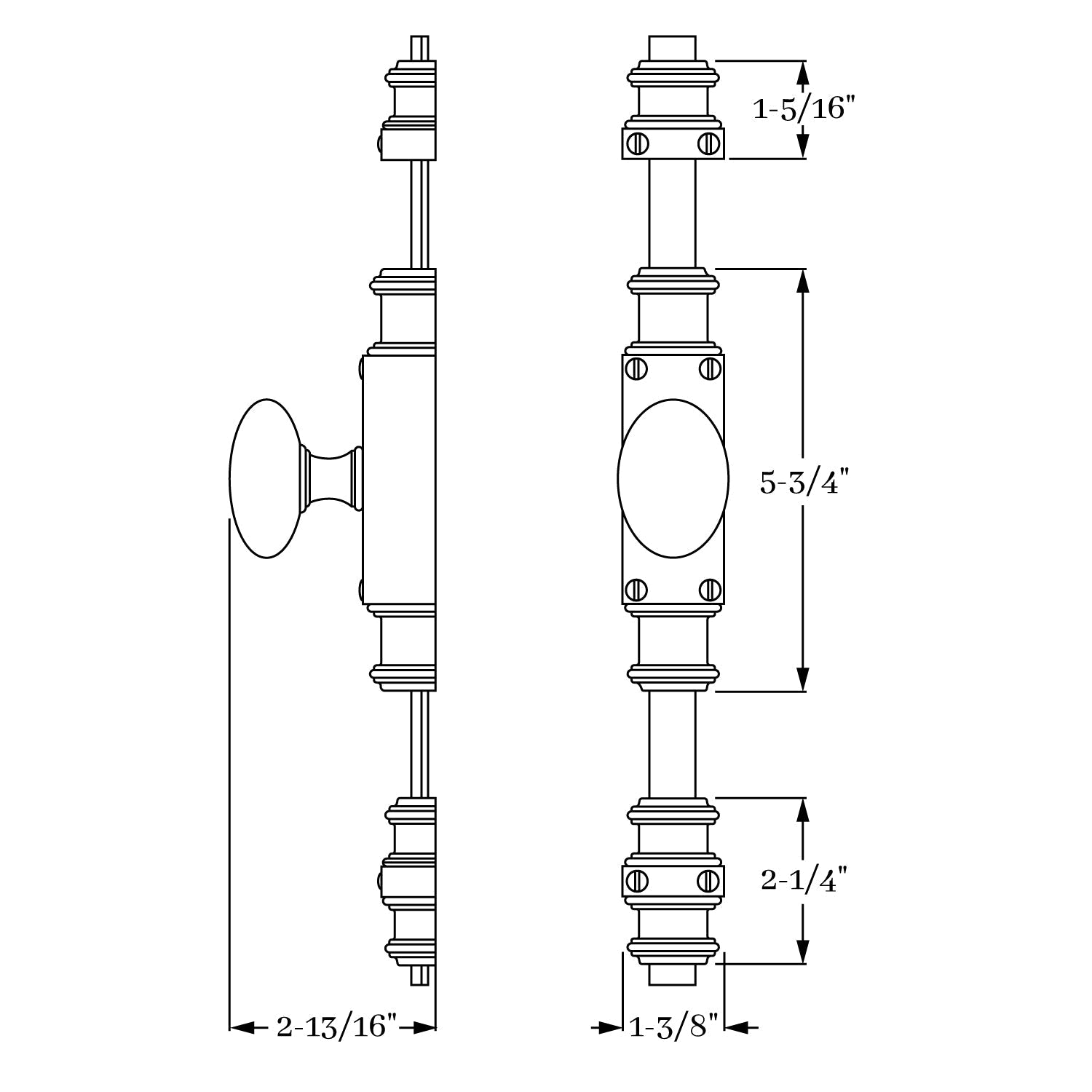 3281, Cabinet Cremone w/ Oval Knob - Half Dummy - 1-3/8" x 5-3/4" Square, Cabinet Cremones