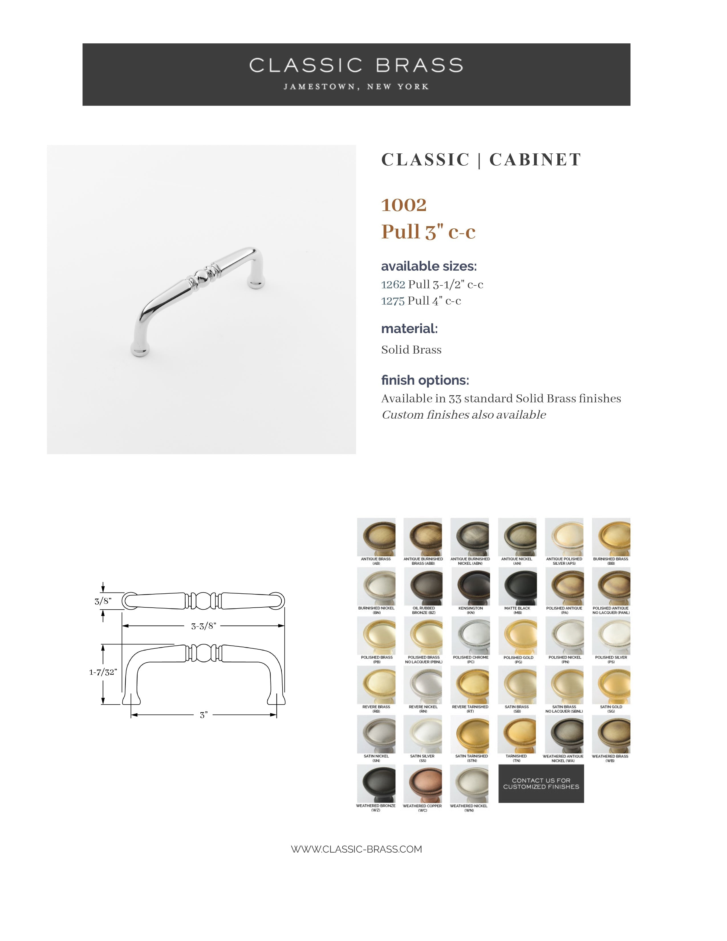 1002, Pull - 3" c-c, Classic Brass Hutter Collection