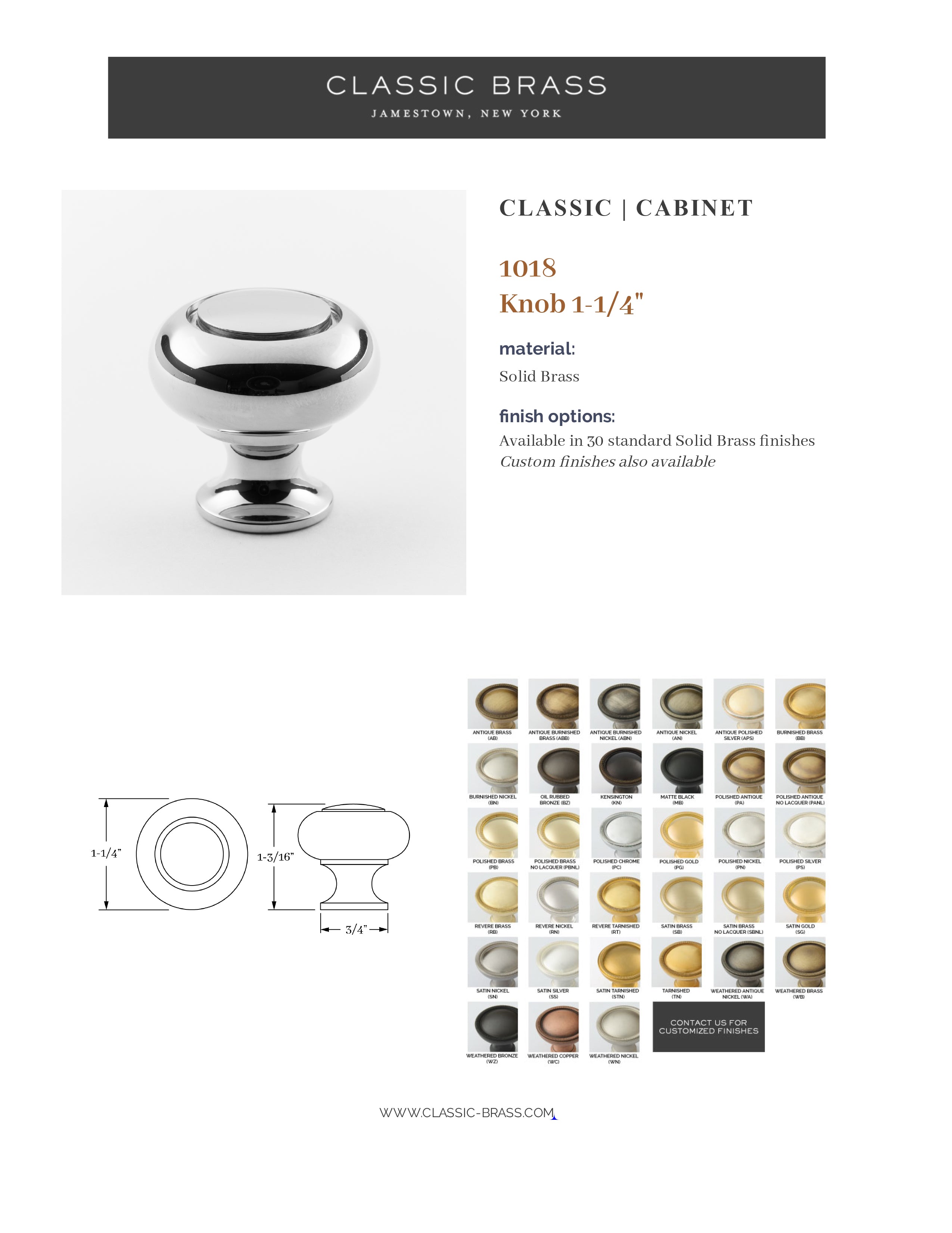 1018, Knob - 1-1/4", Classic Brass Hutter Collection