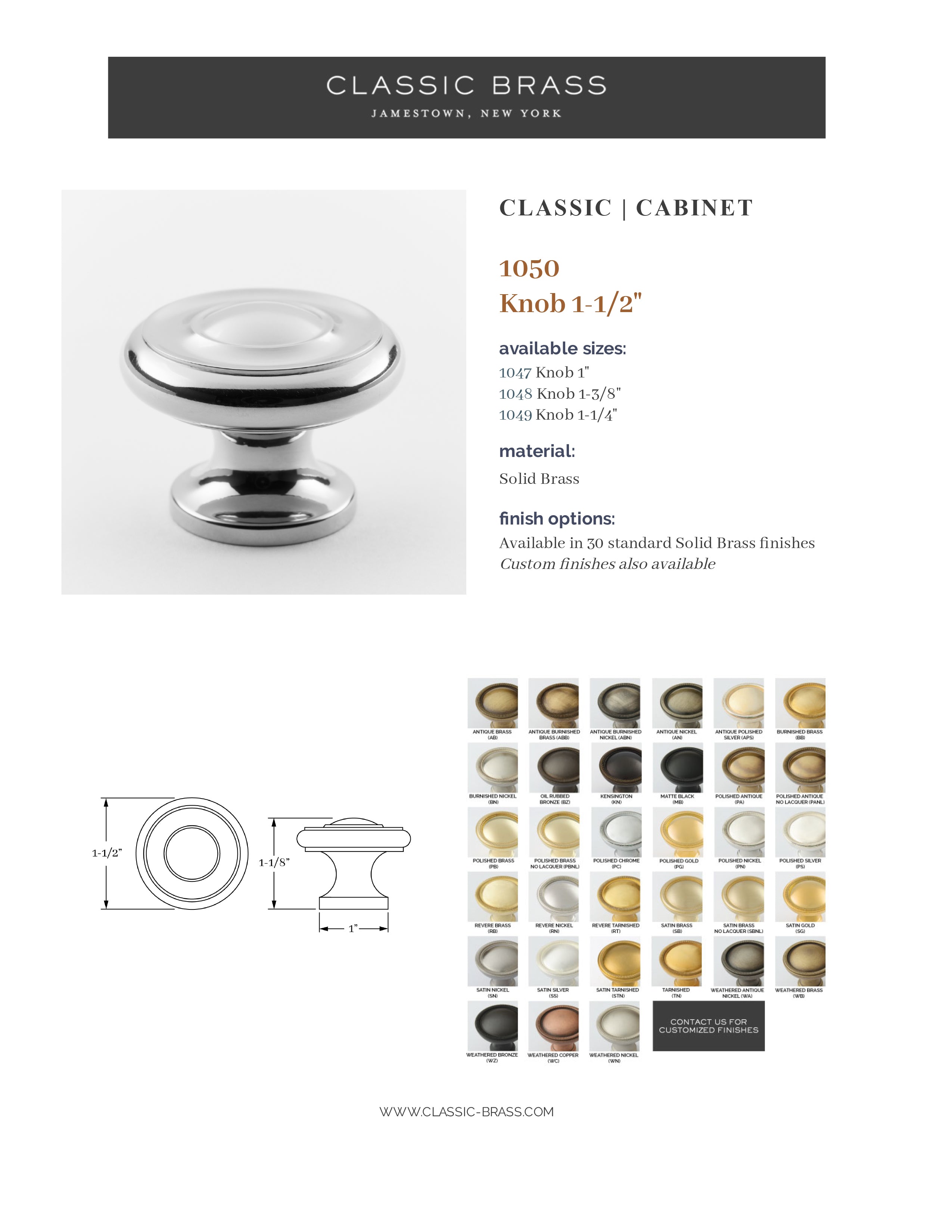 1050, Knob - 1-1/2", Classic Brass Hutter Collection