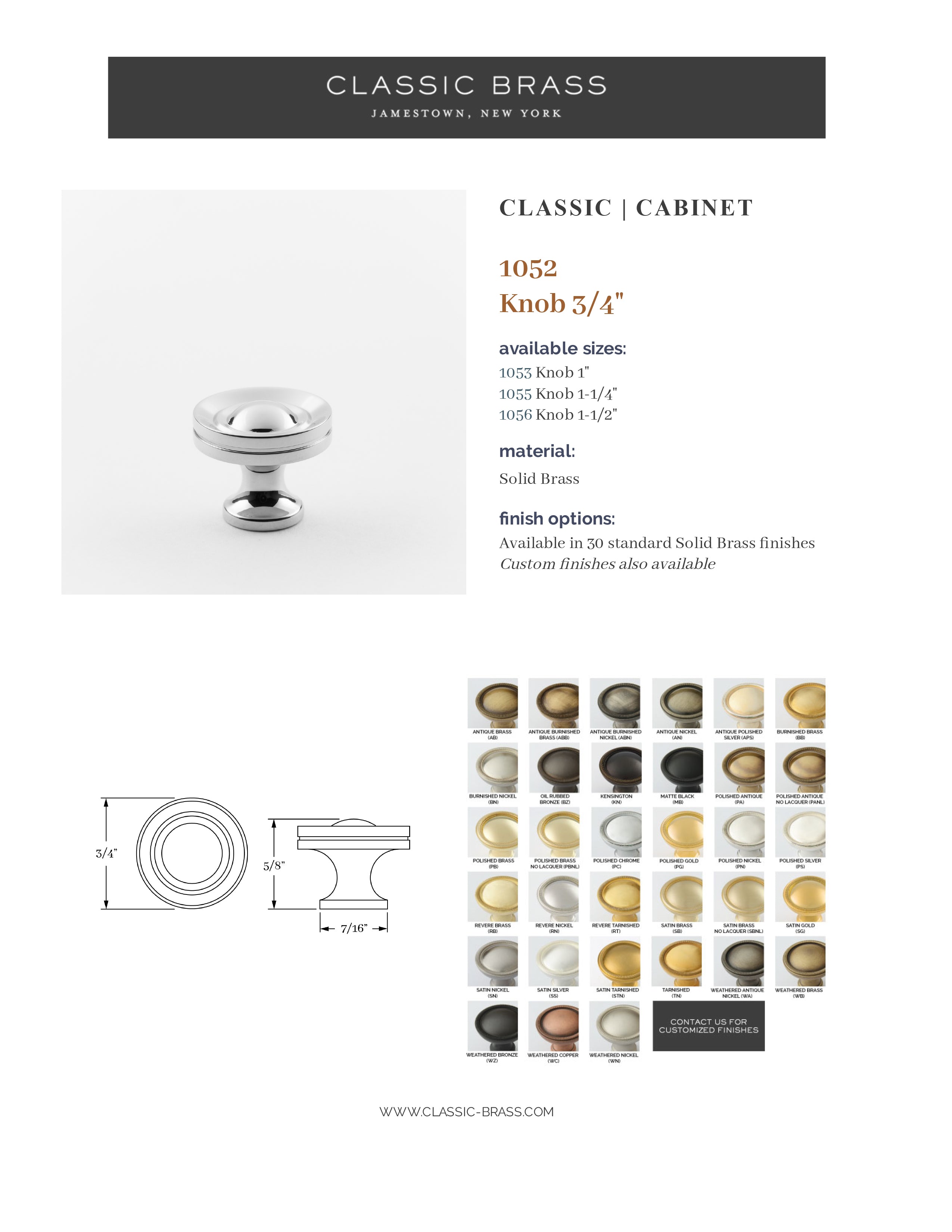 1052, Knob - 3/4", Classic Brass Hutter Collection