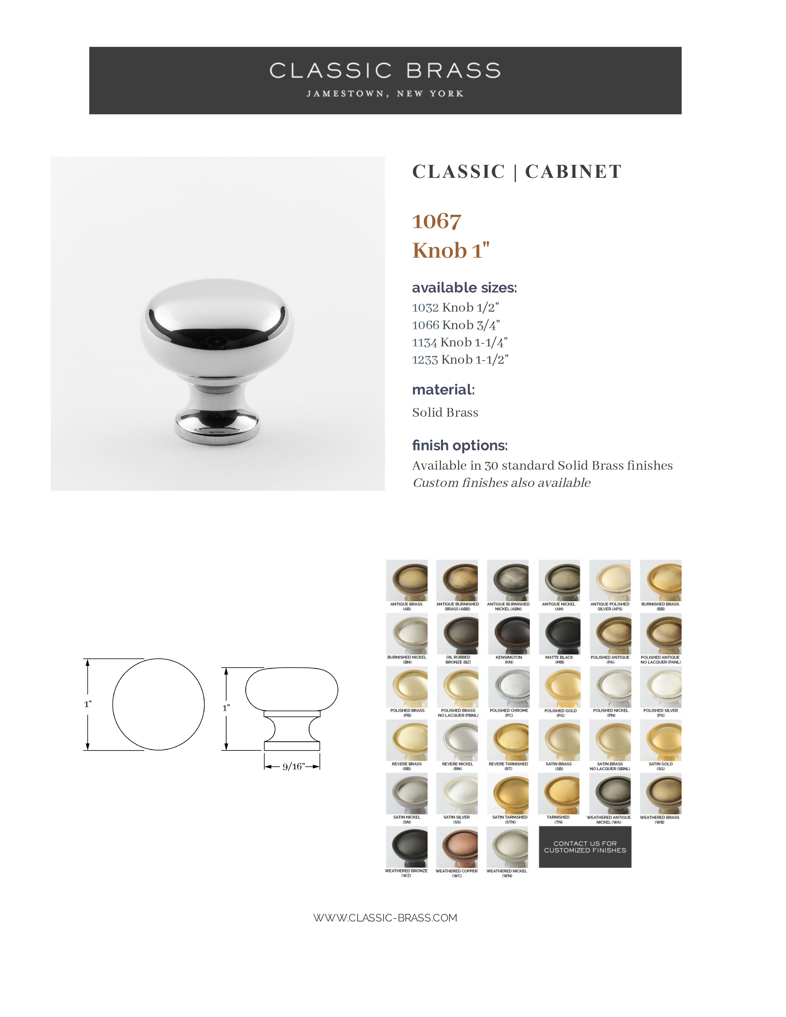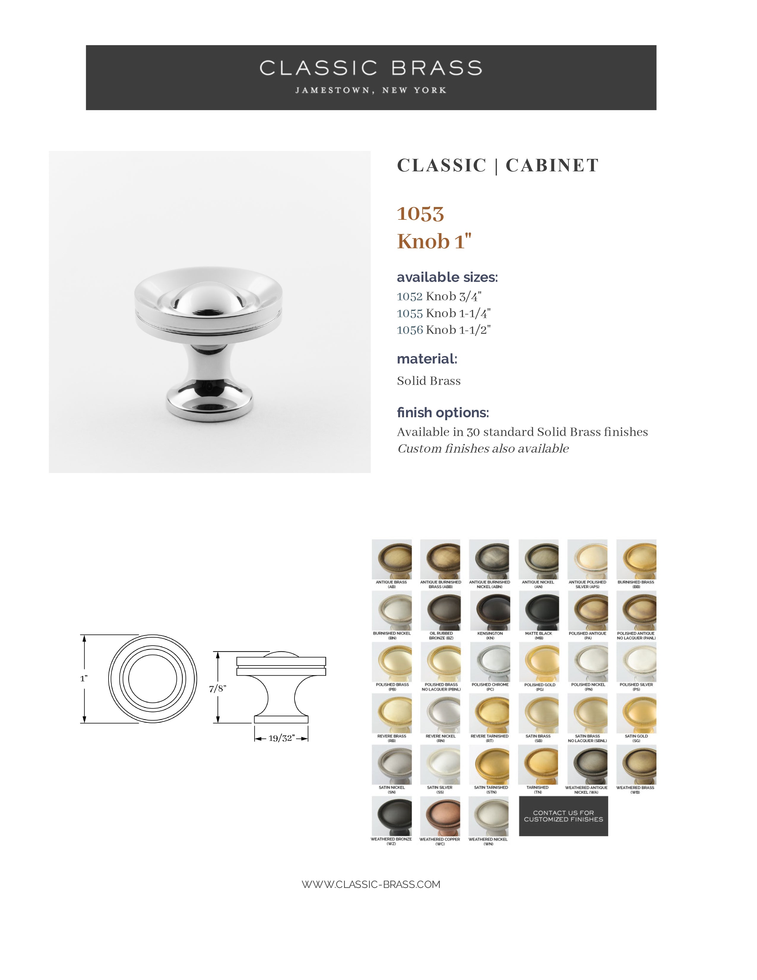 1056, Knob - 1-1/2", Classic Brass Hutter Collection
