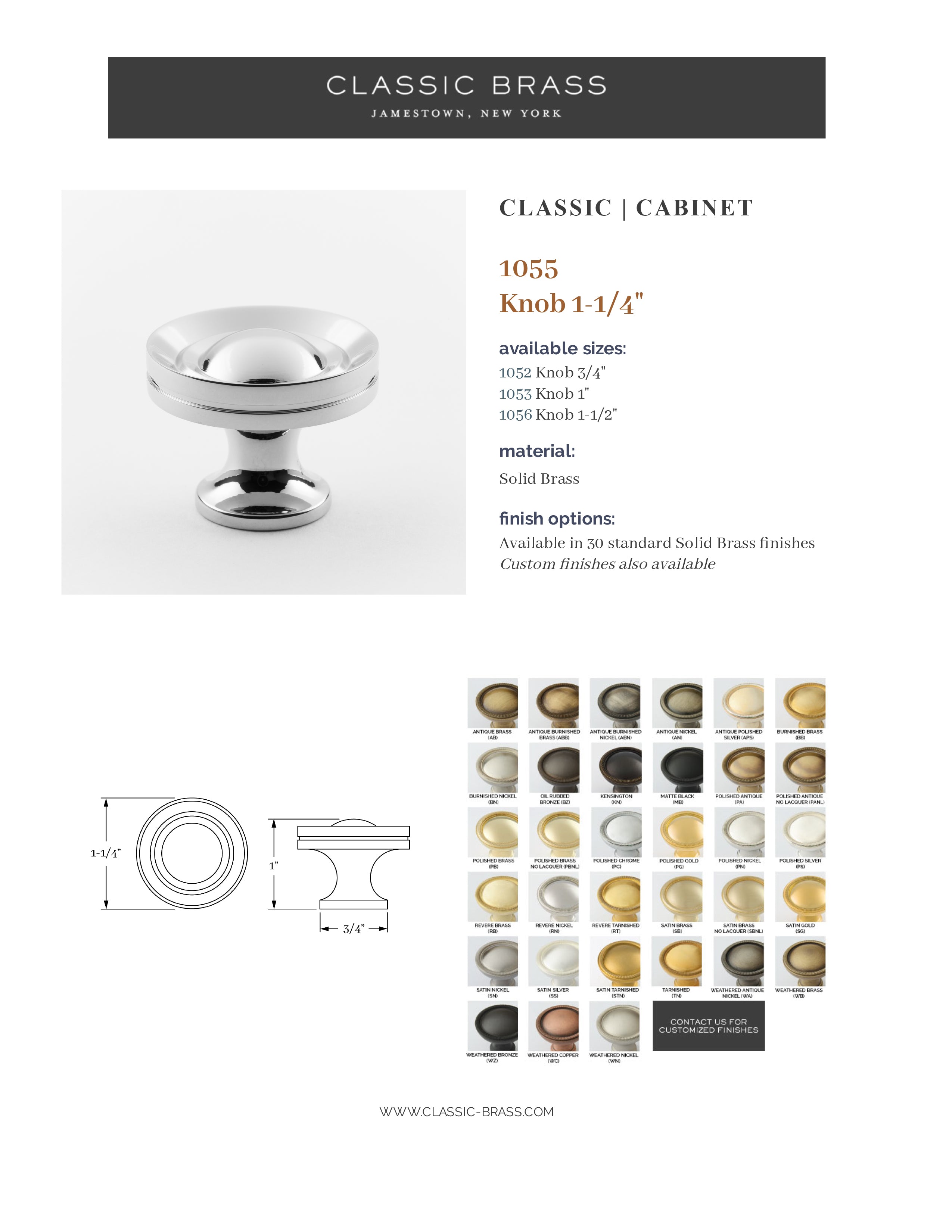 1055, Knob - 1-1/4", Classic Brass Hutter Collection