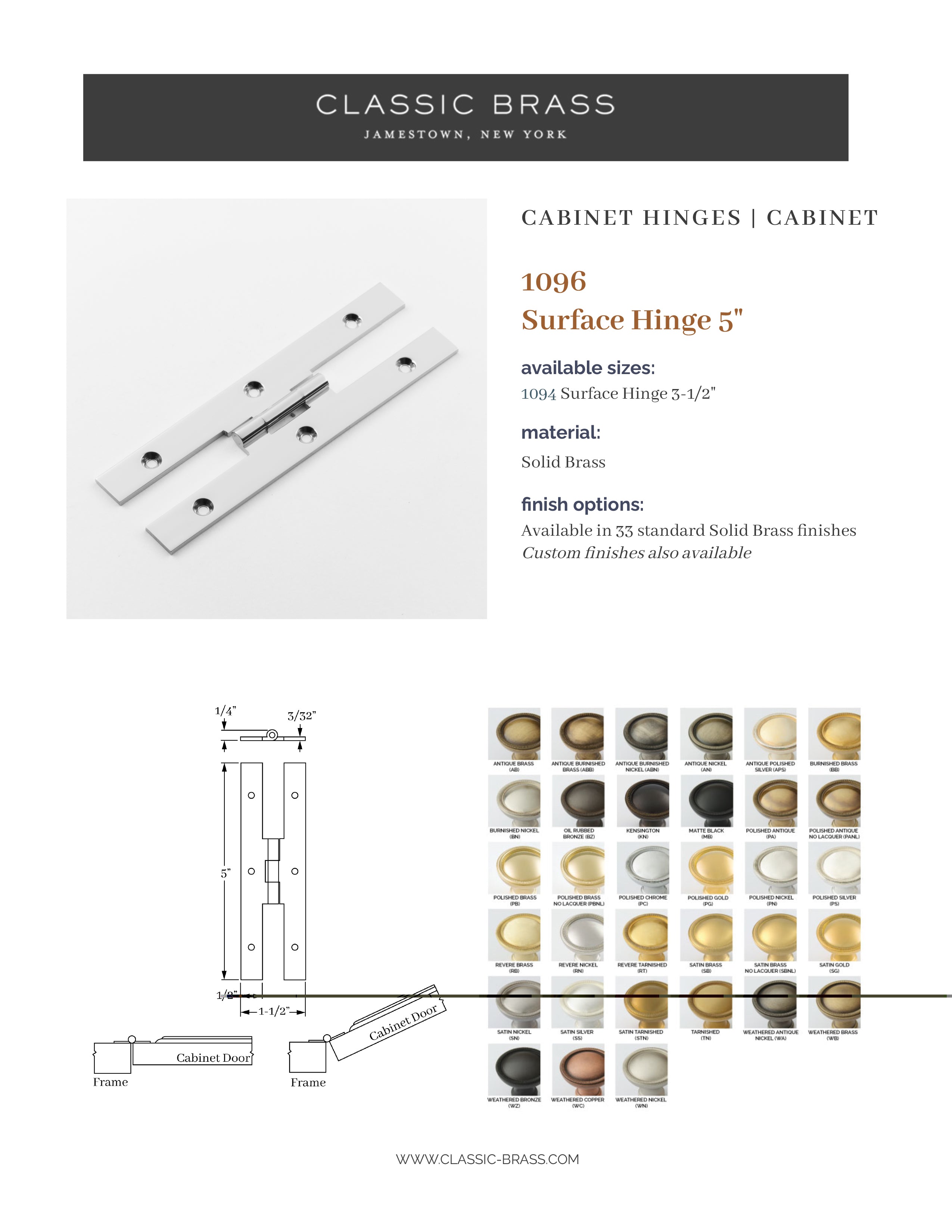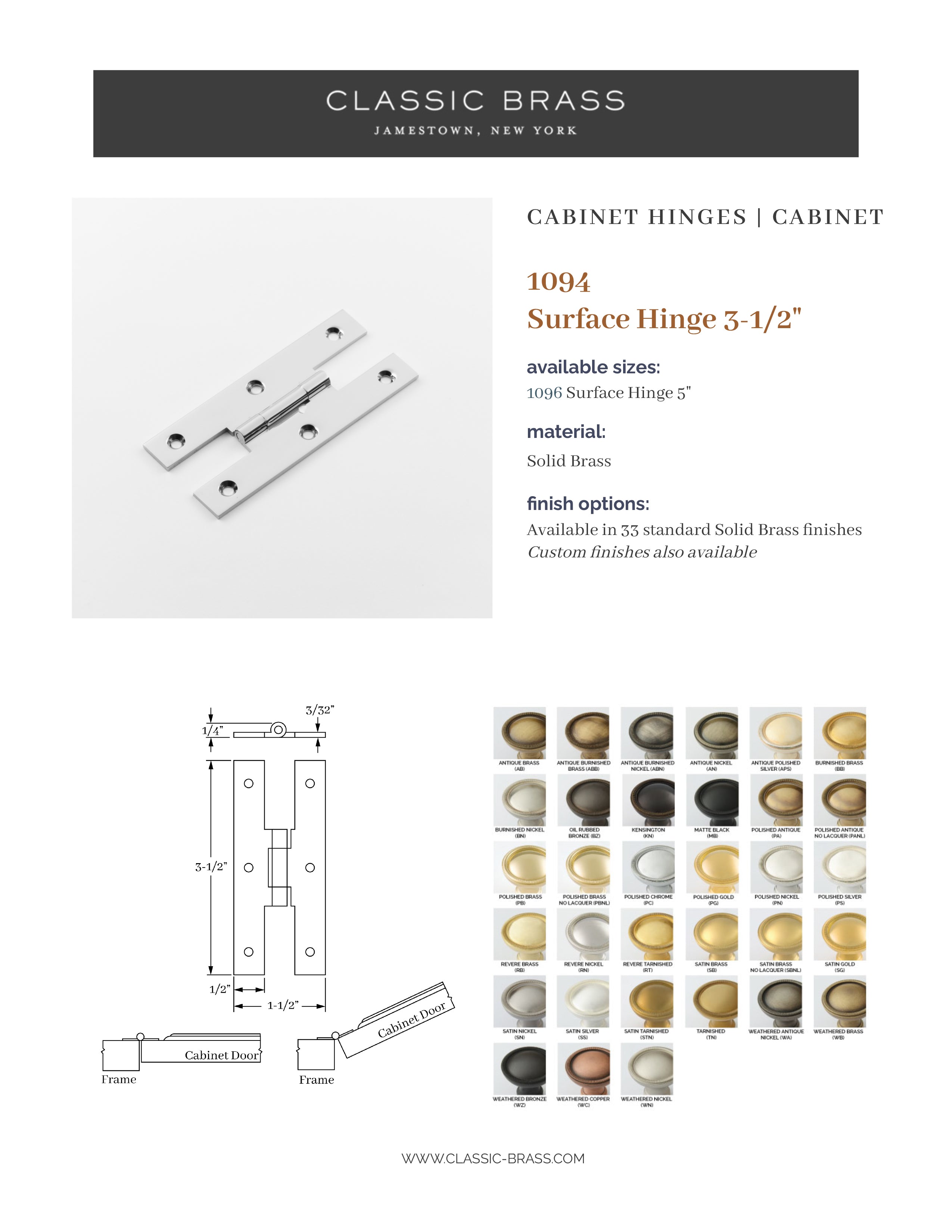 1094, Hinge - 3-1/2", Classic Brass Hinges