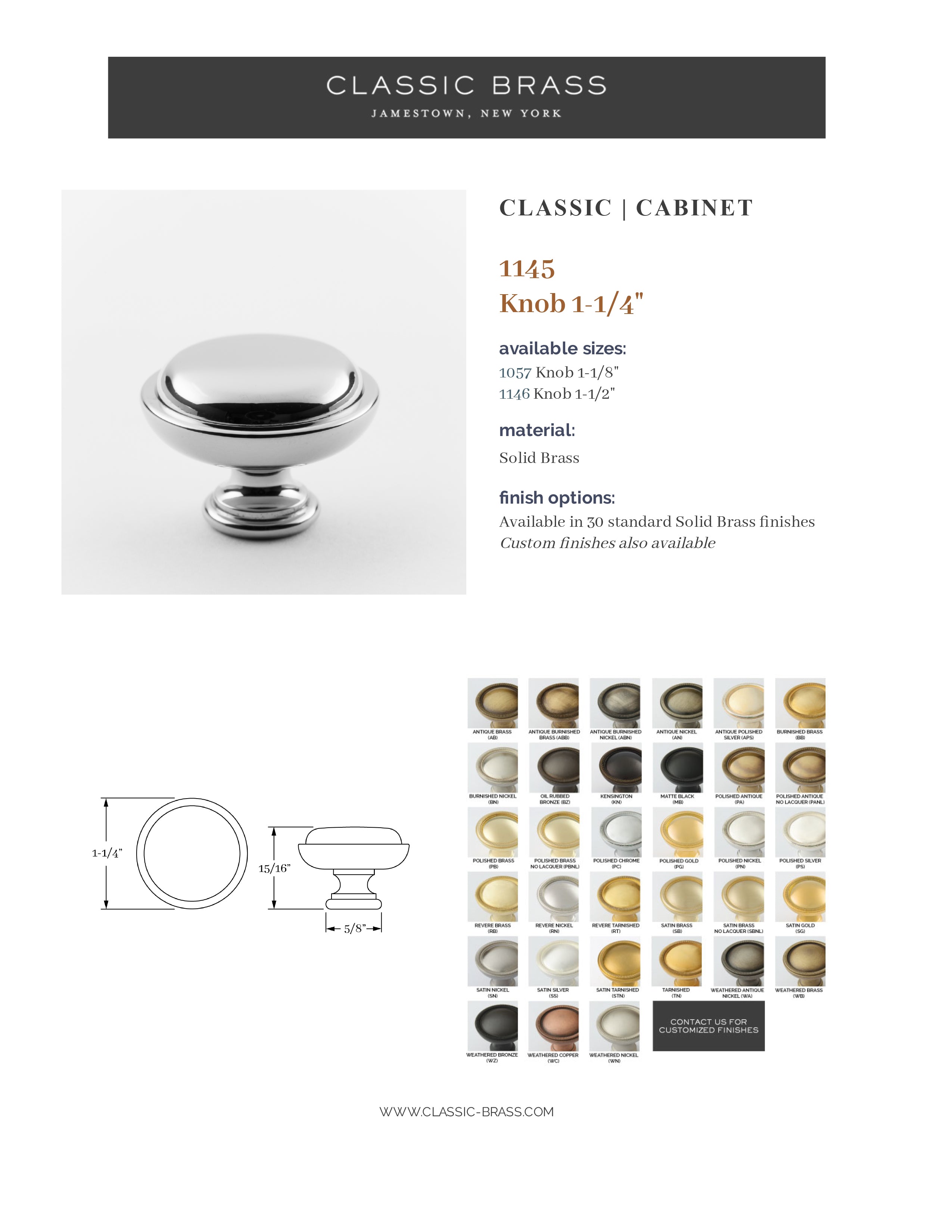 1145, Knob - 1-1/4", Classic Brass Hutter Collection