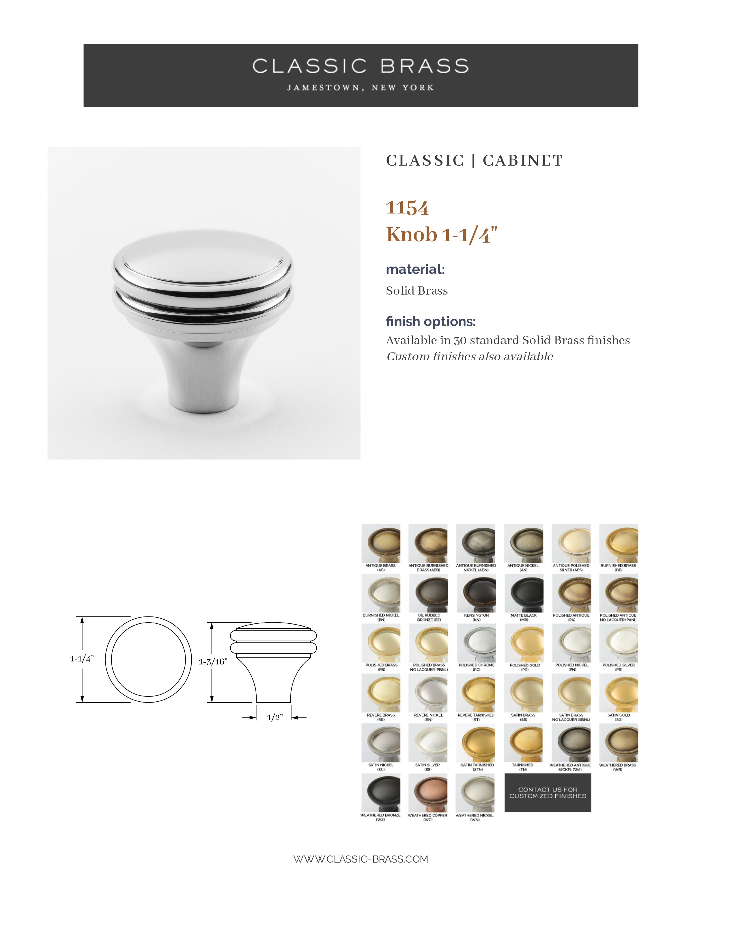 1154, Knob - 1-1/4", Classic Brass Hutter Collection