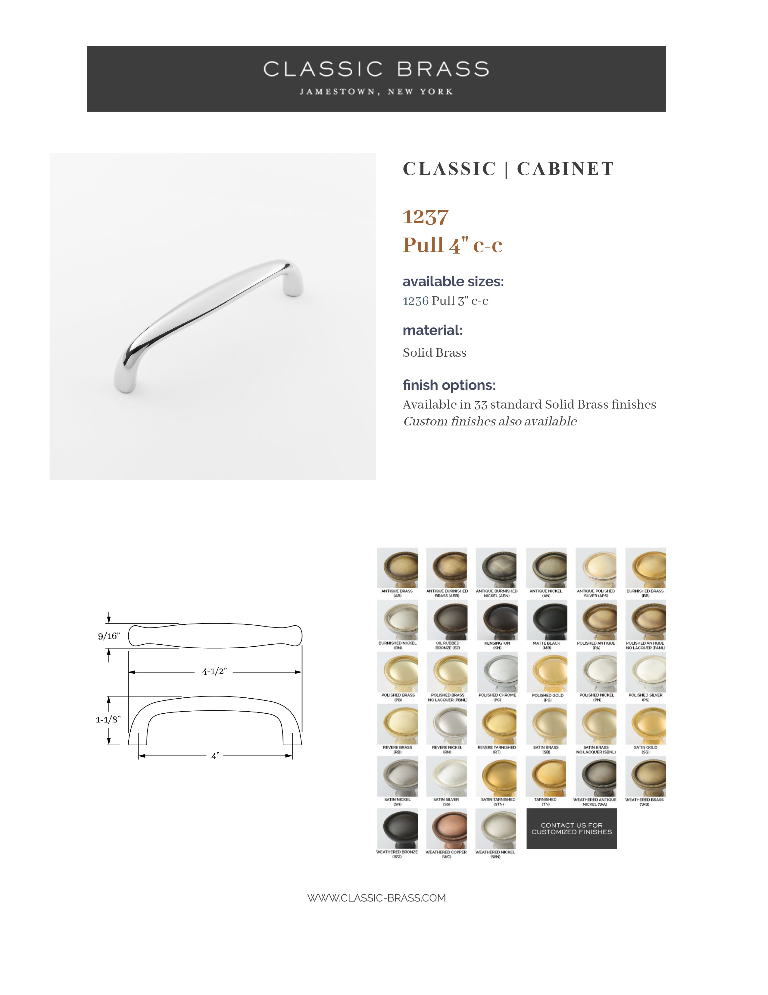 1237, Pull - 4" c-c, Classic Brass Hutter Collection
