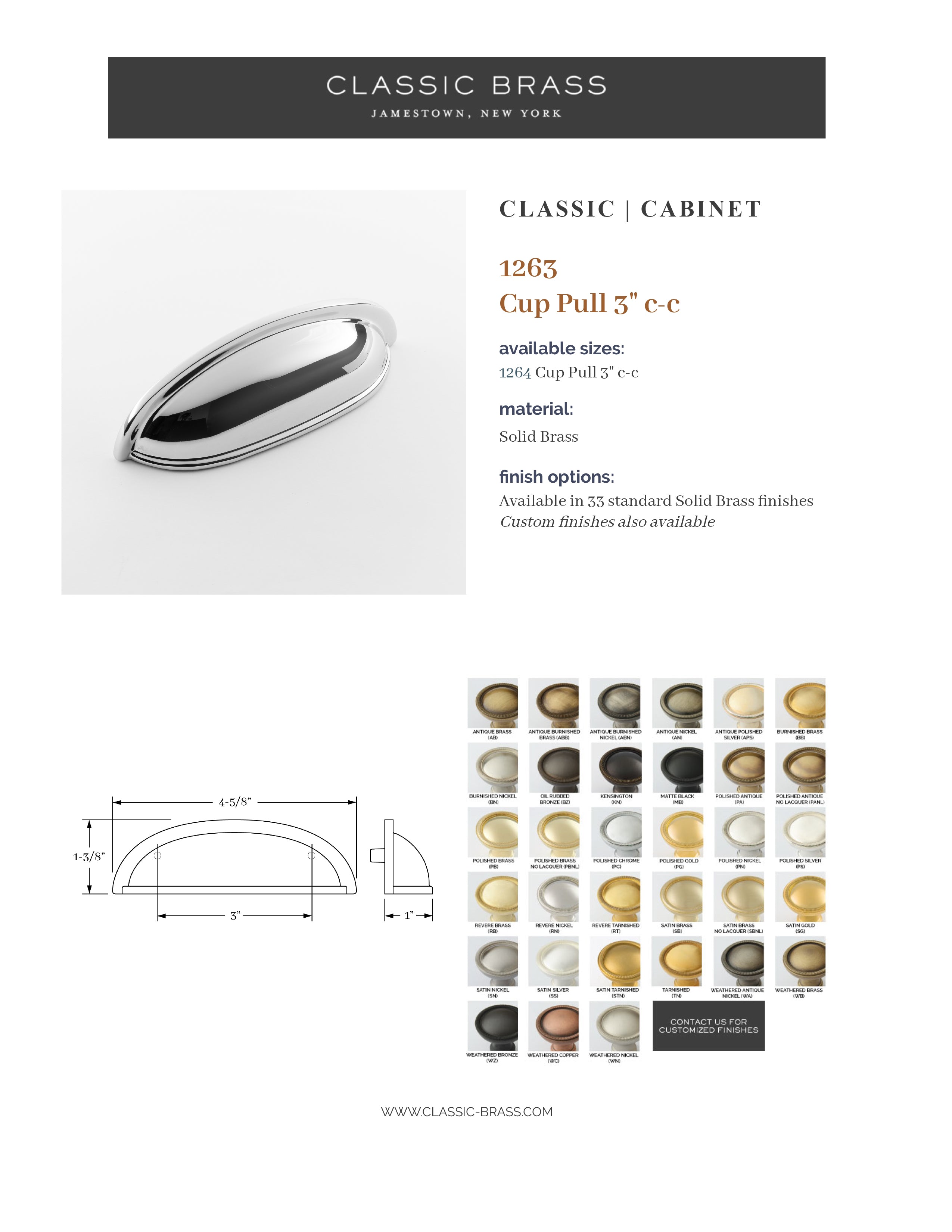 1263, Cup Pull - 3" c-c, Classic Brass Hutter Collection