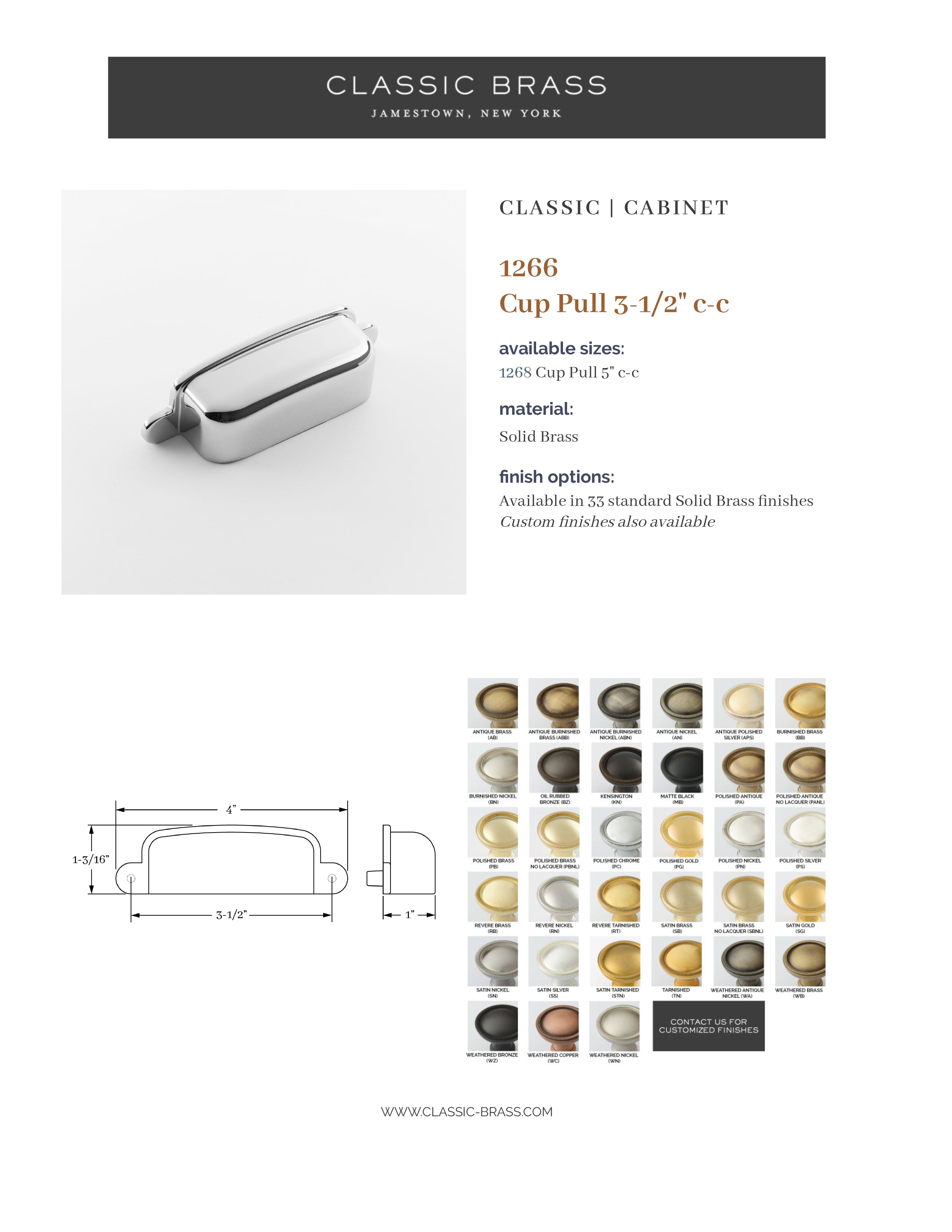 1266, Cup Pull - 3-1/2" c-c, Classic Brass Hutter Collection