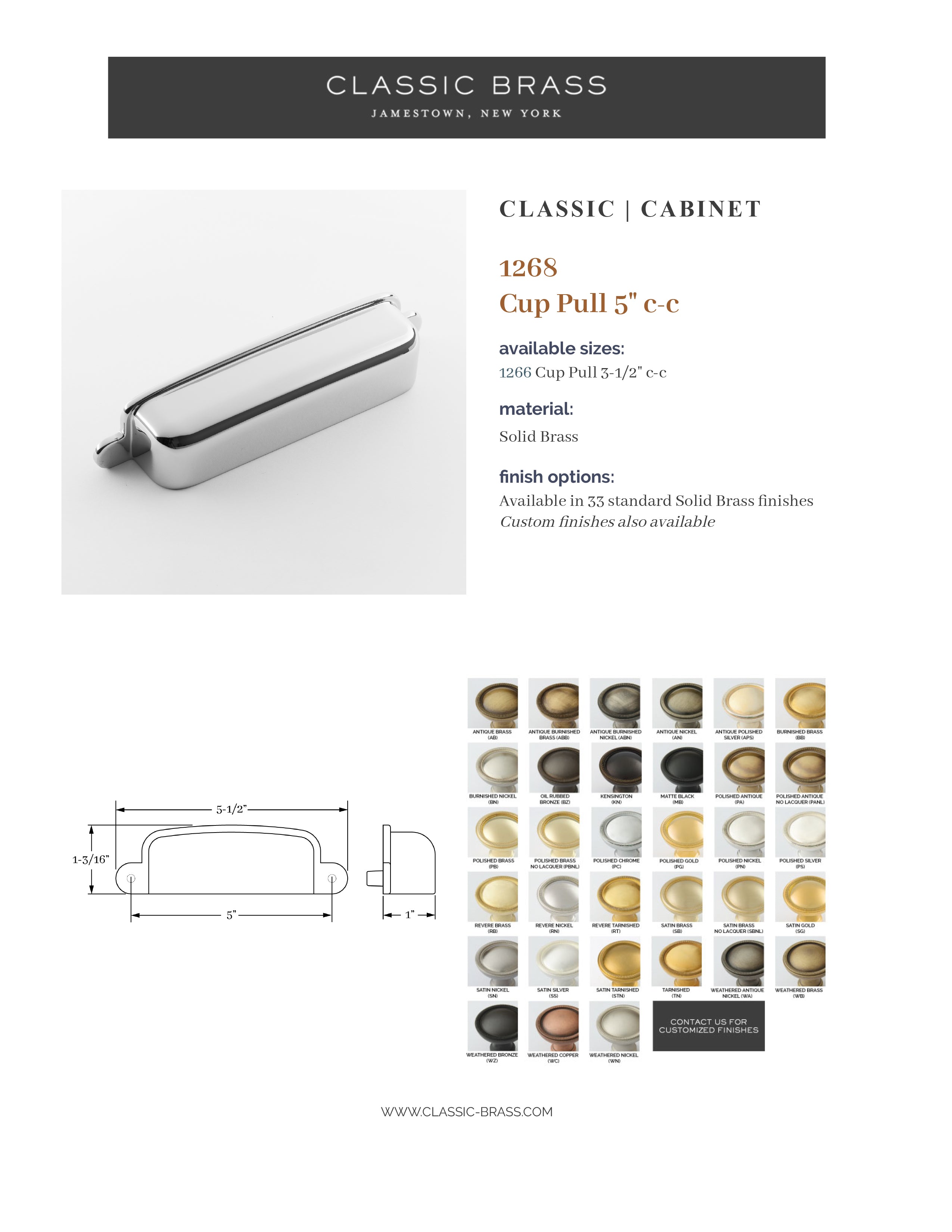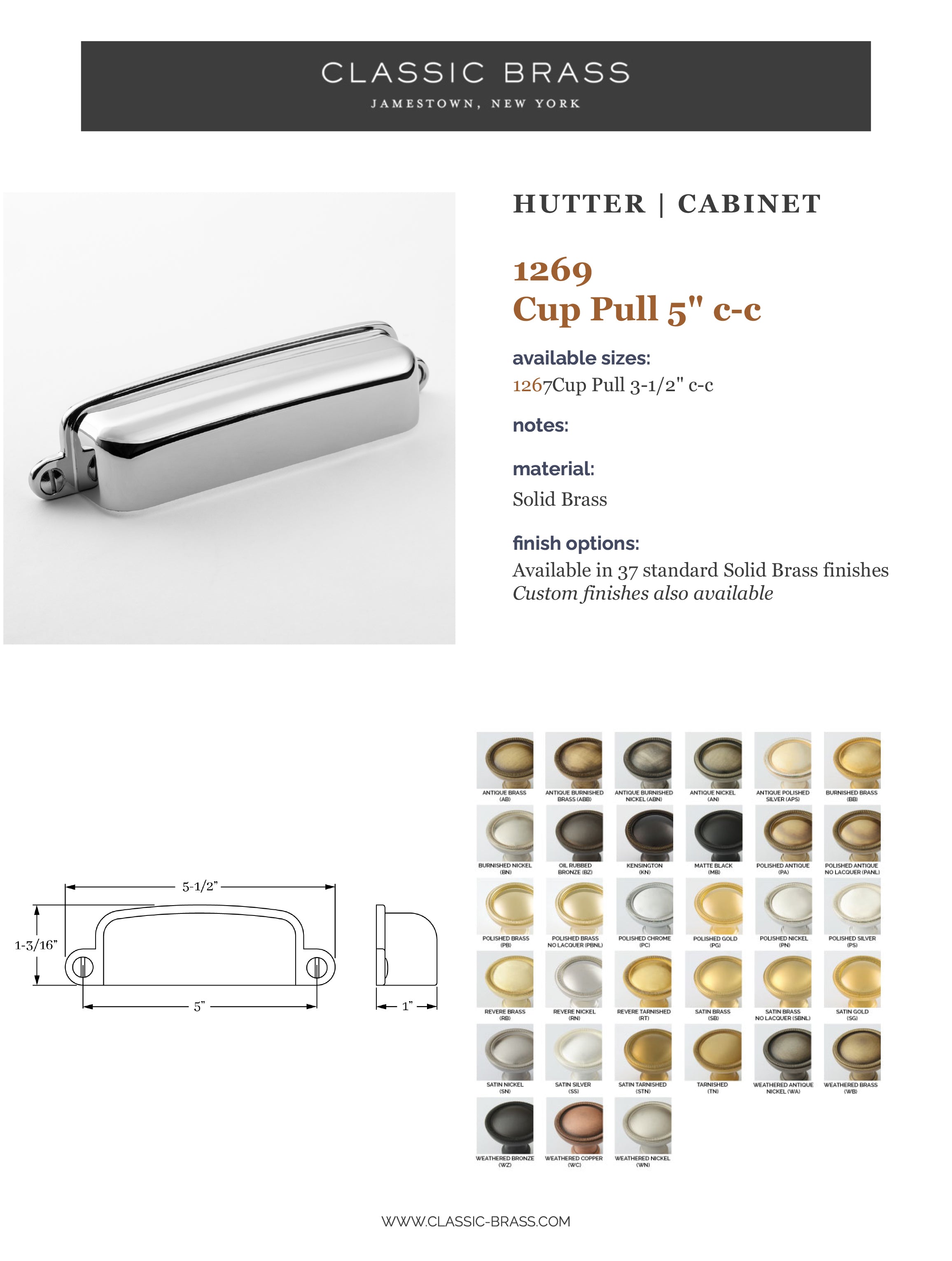 1268, Cup Pull - 5" c-c, Classic Brass Hutter Collection