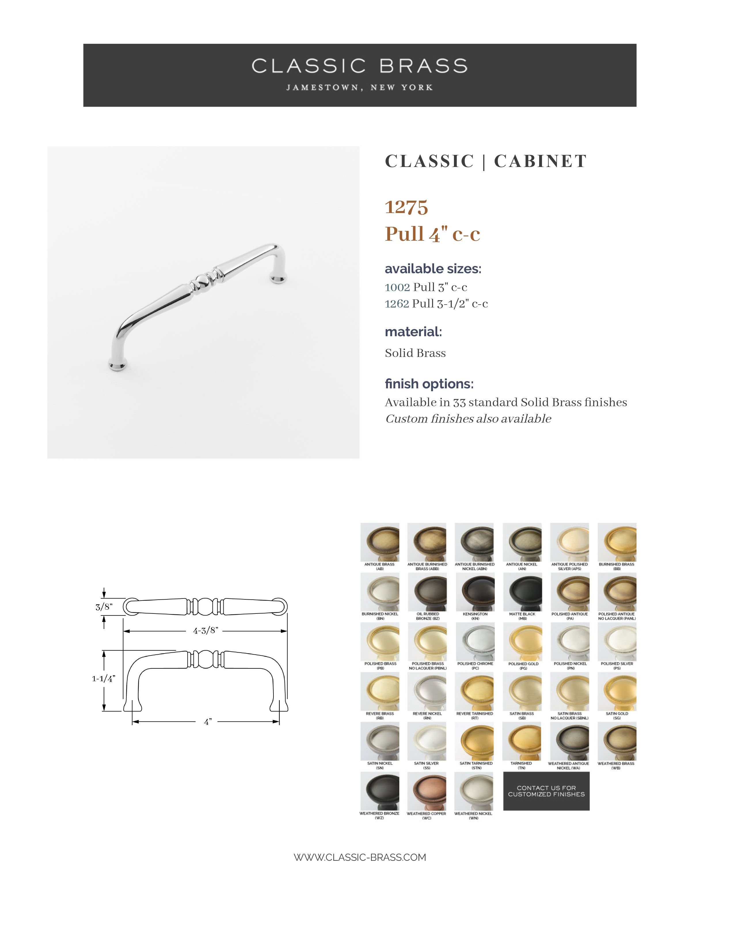 1275, Pull - 4" c-c, Classic Brass Hutter Collection
