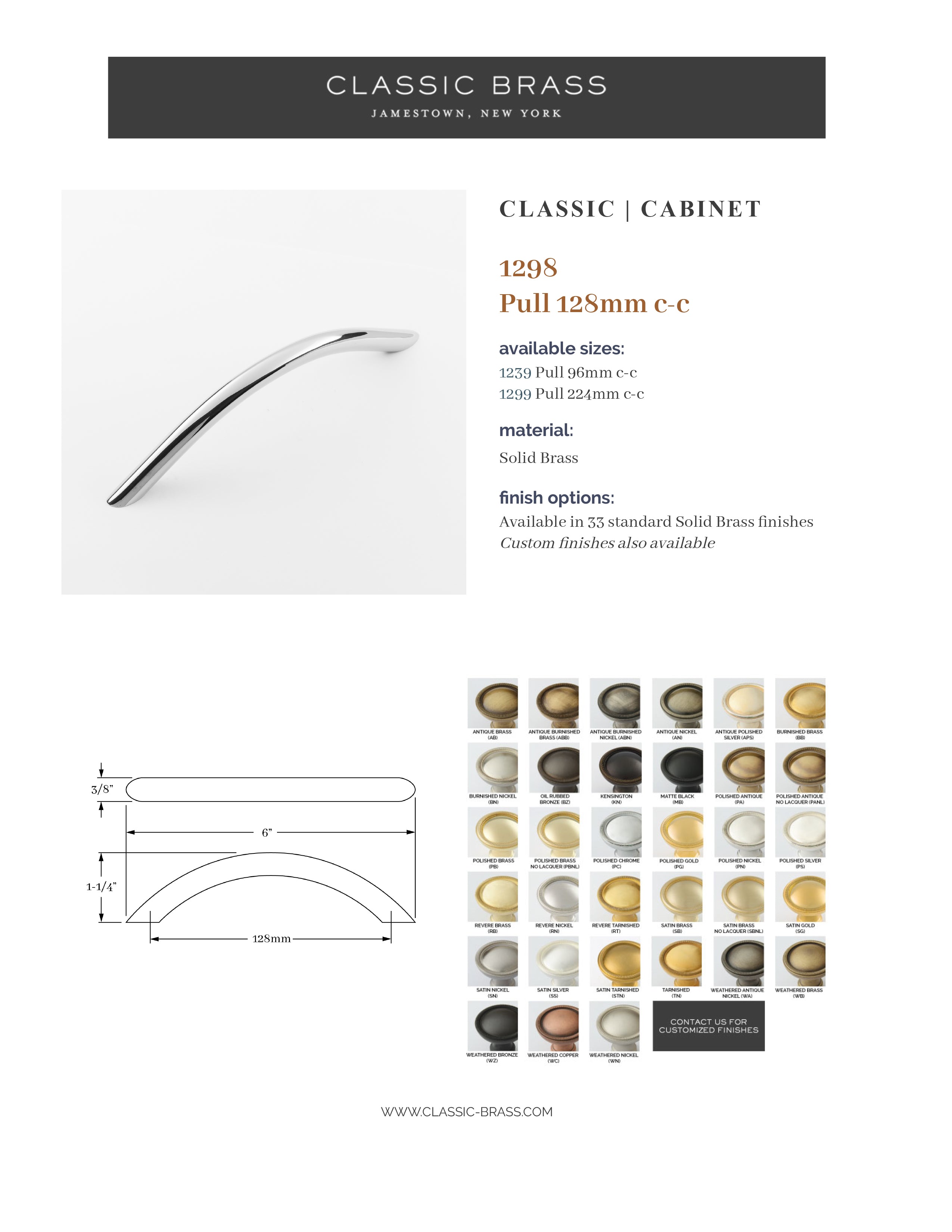 1298, Pull - 128mm c-c, Classic Brass Hutter Collection