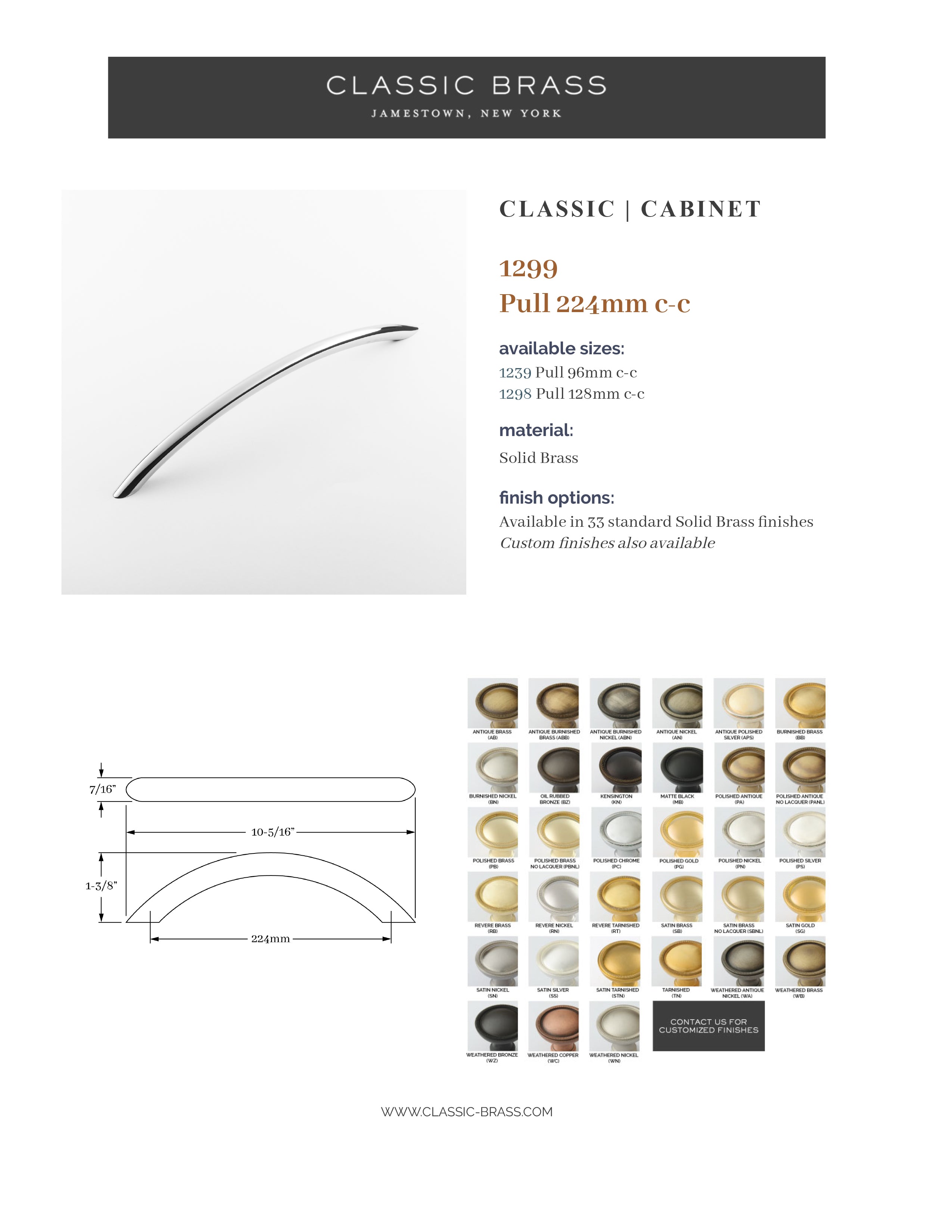 1299, Pull - 224mm c-c, Classic Brass Hutter Collection