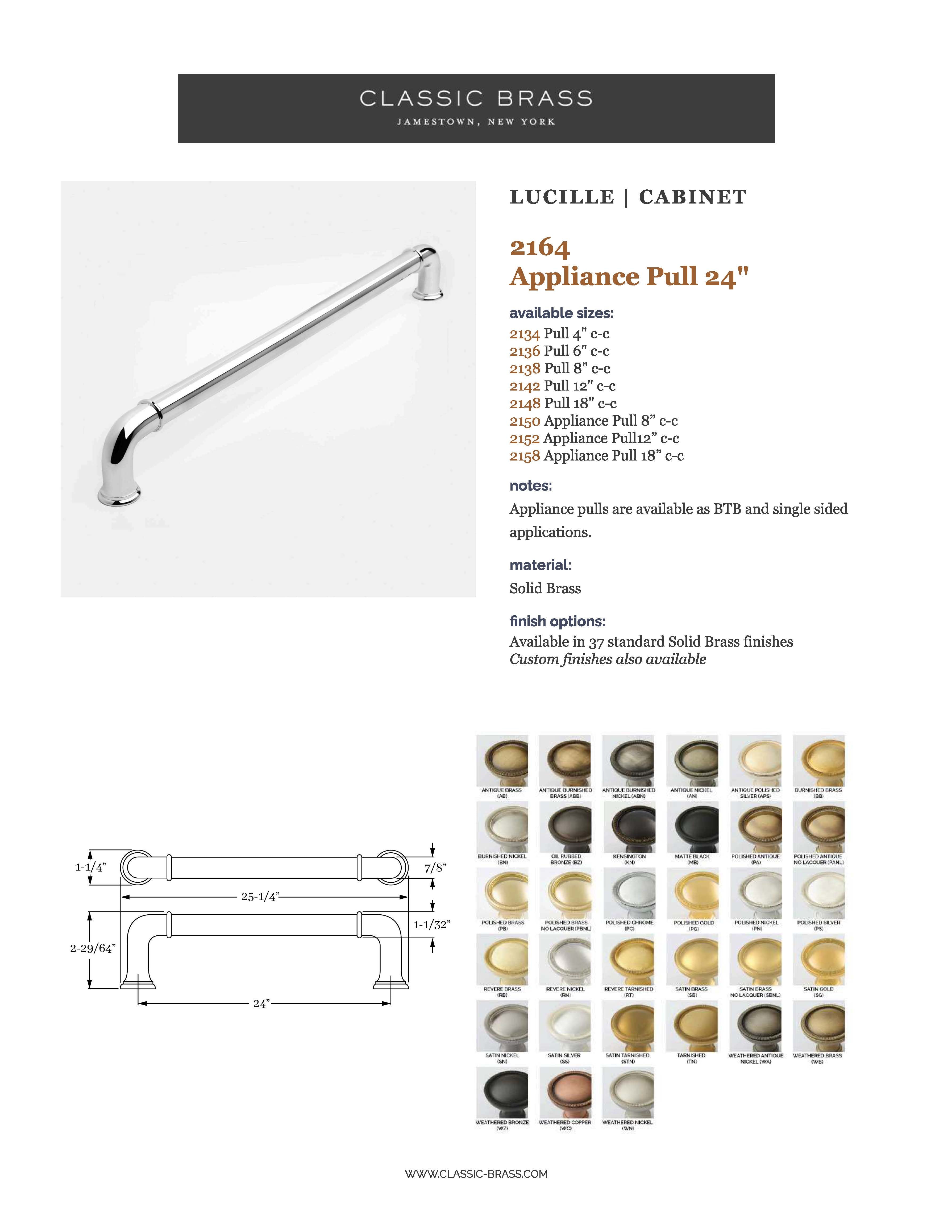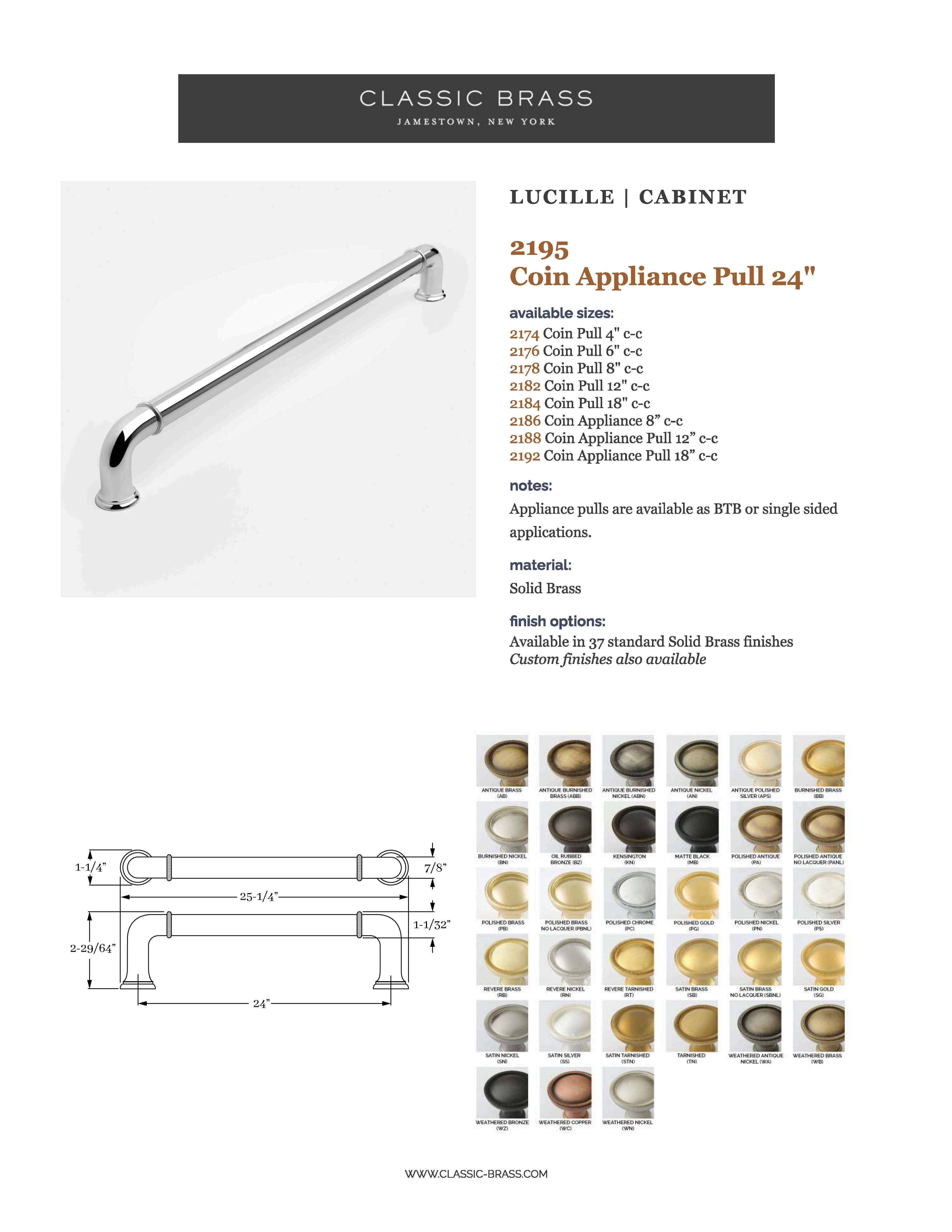 2195, Appliance Pull - Coin - 24" c-c, Classic Brass Lucille Collection