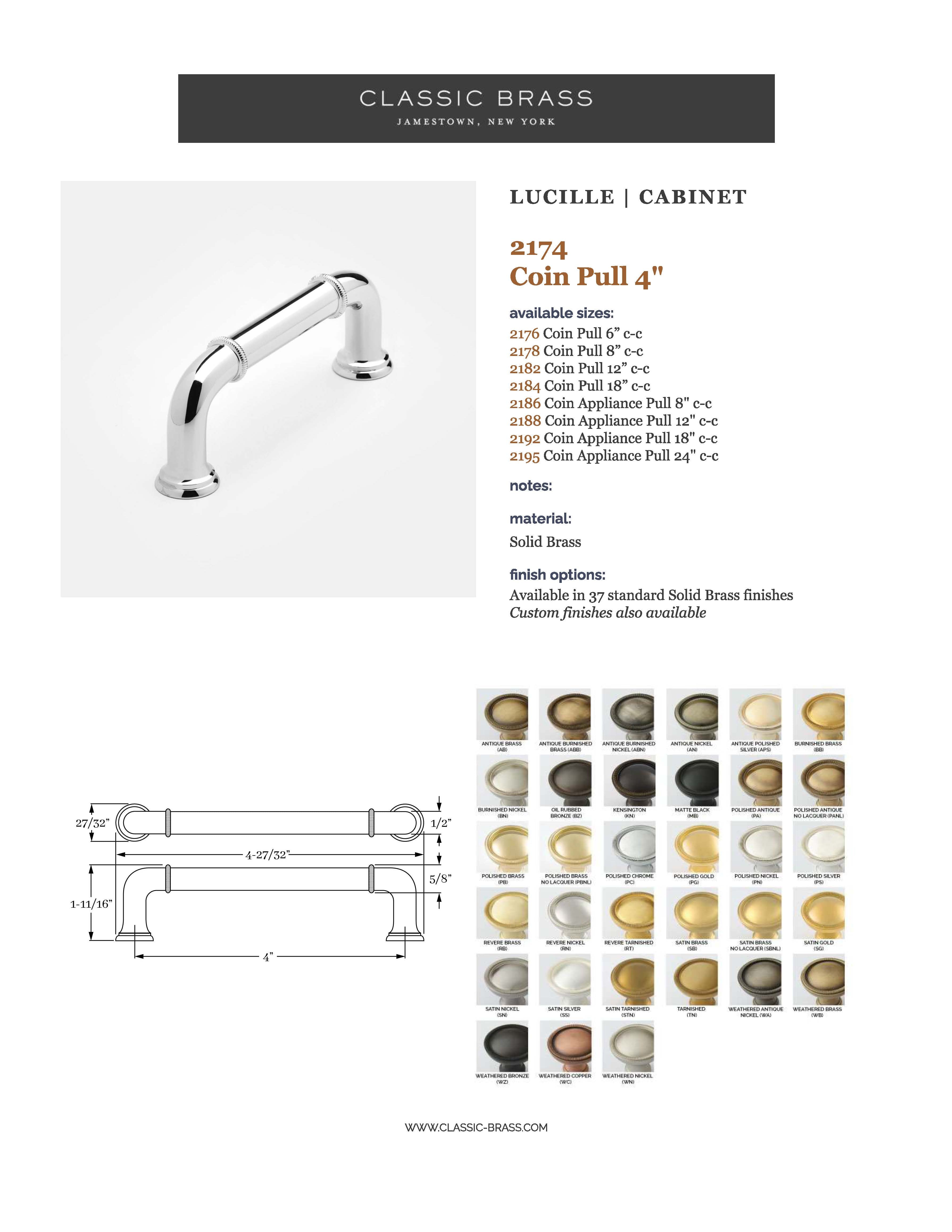 2174, Pull - Coin - 4" c-c, Classic Brass Lucille Collection