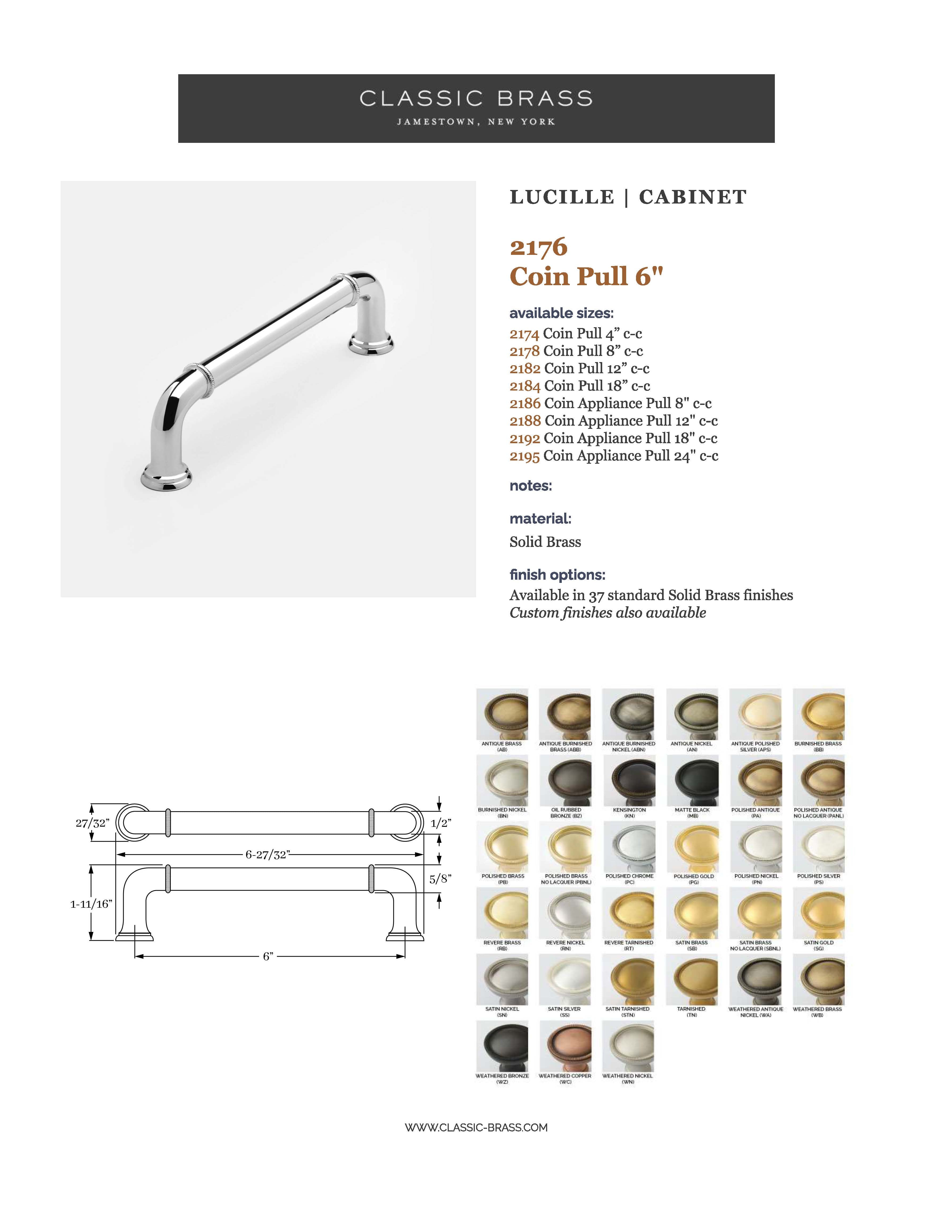 2176, Pull - Coin - 6" c-c, Classic Brass Lucille Collection