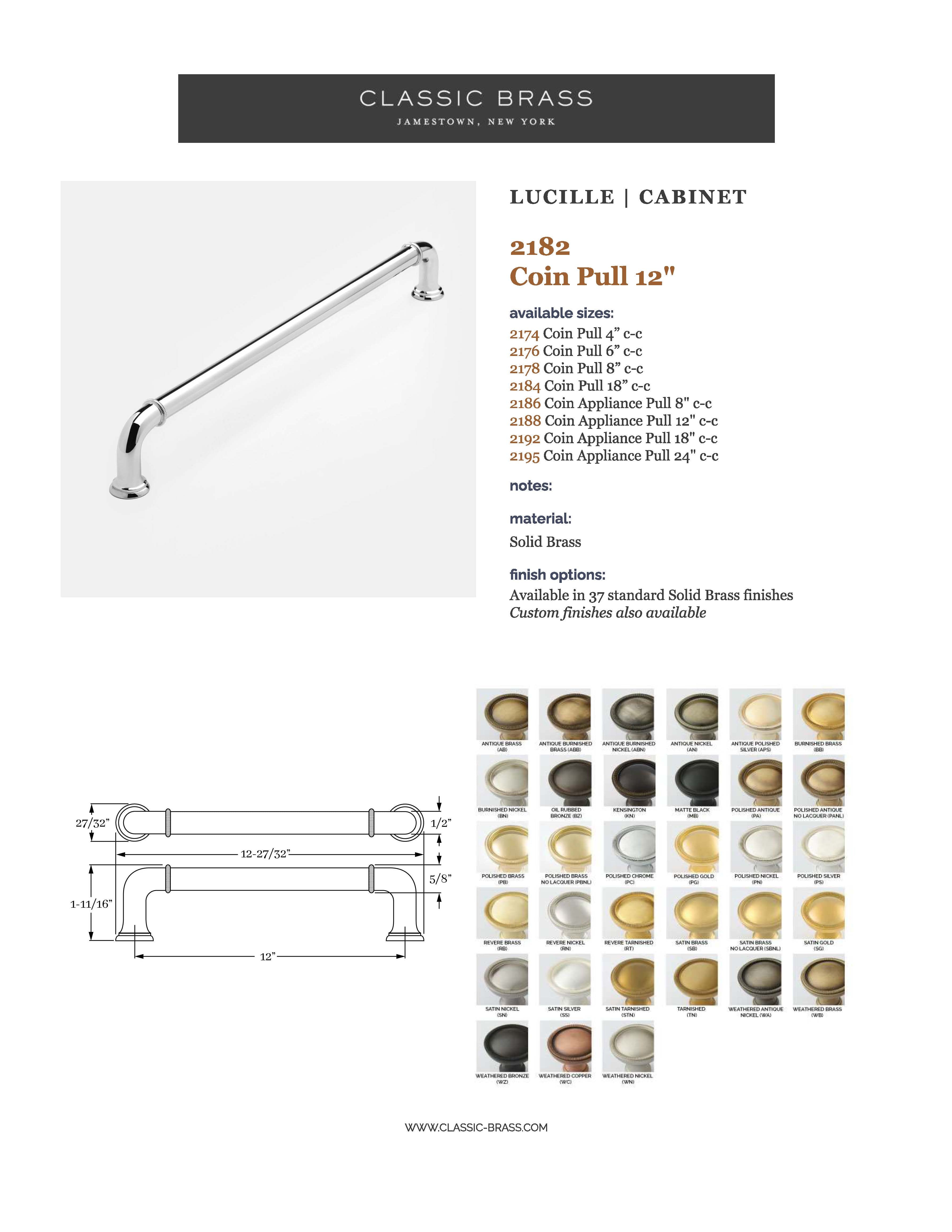 2182, Pull - Coin - 12" c-c, Classic Brass Lucille Collection