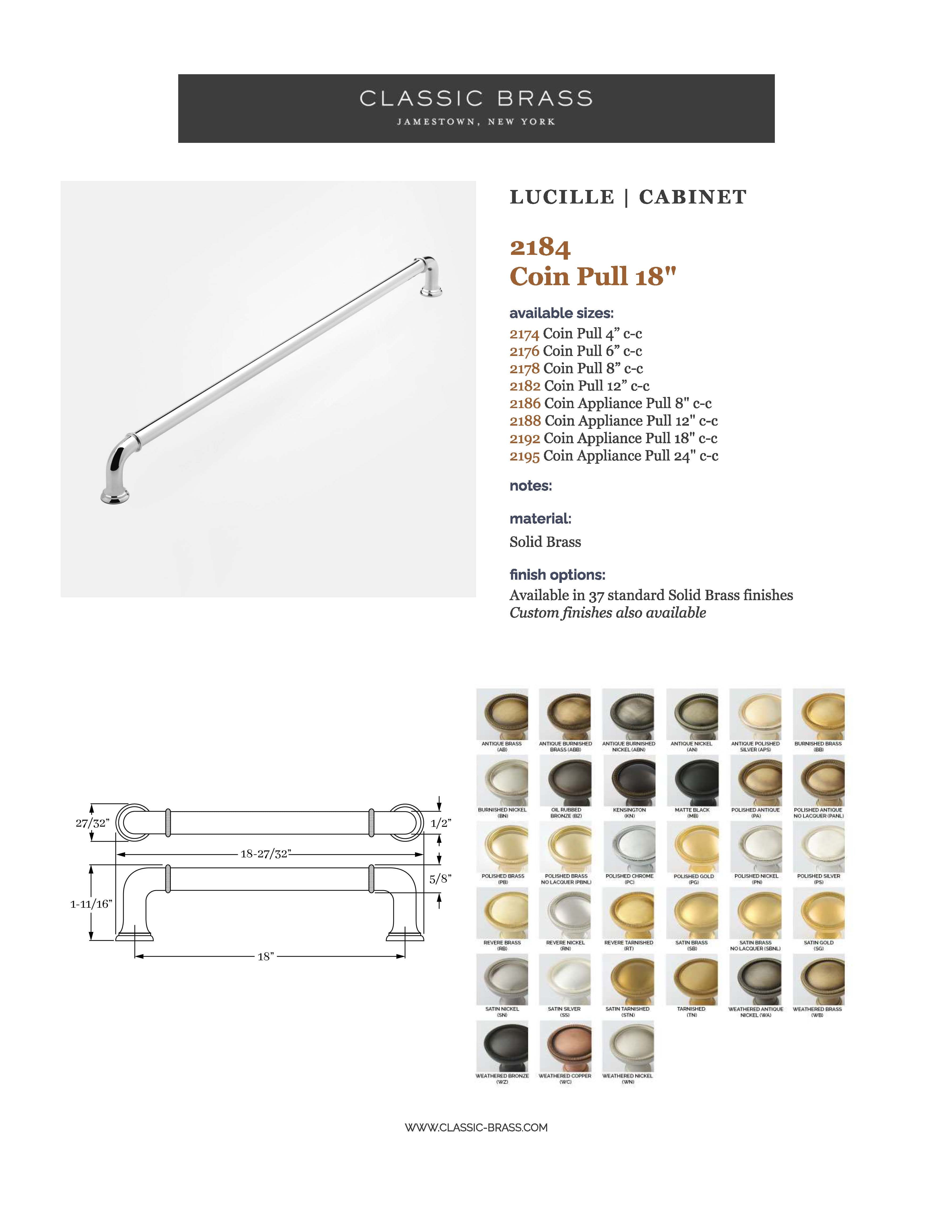 2184, Pull - Coin - 18" c-c, Classic Brass Lucille Collection