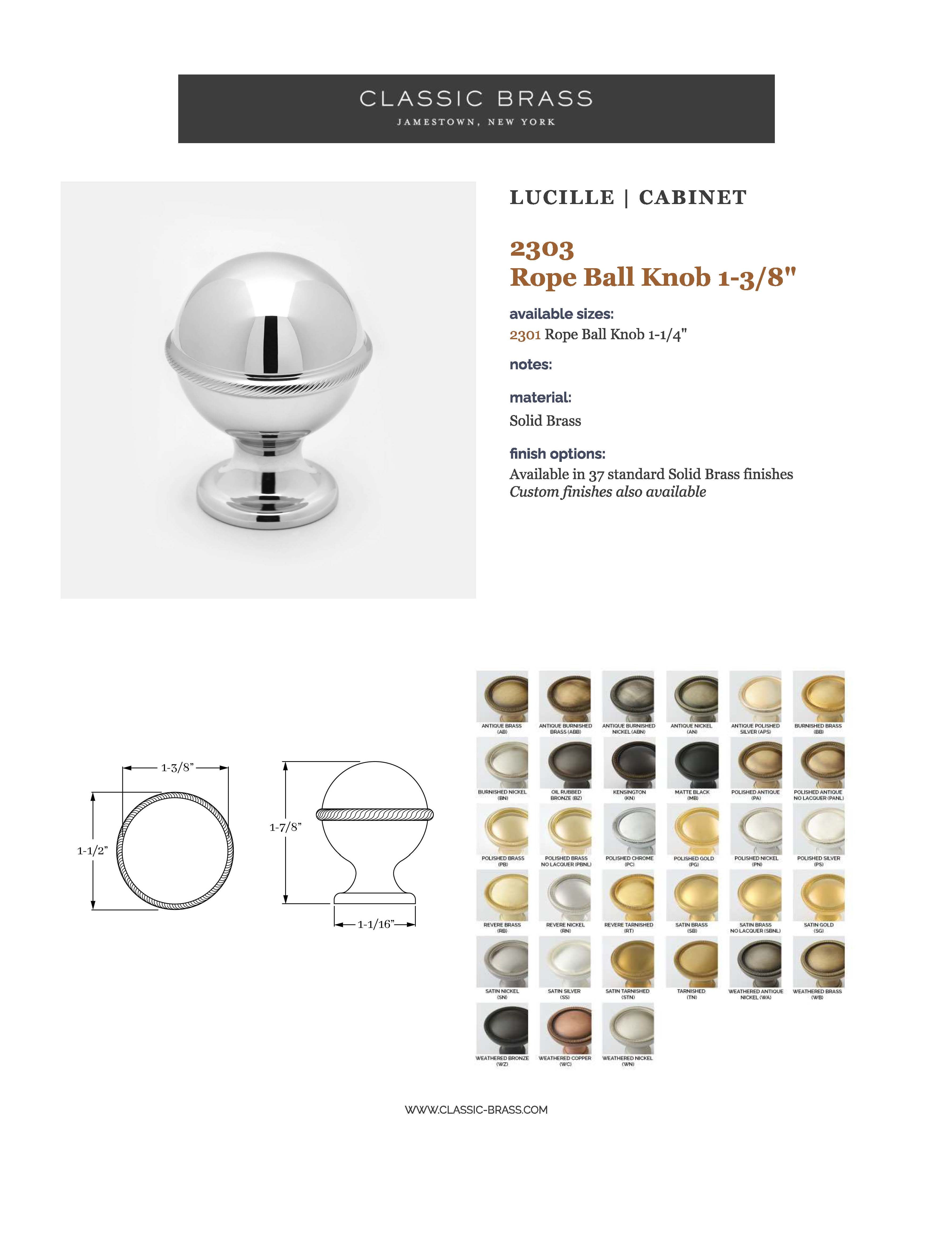 2303, Ball Knob - Rope - 1-3/8", Classic Brass Lucille Collection