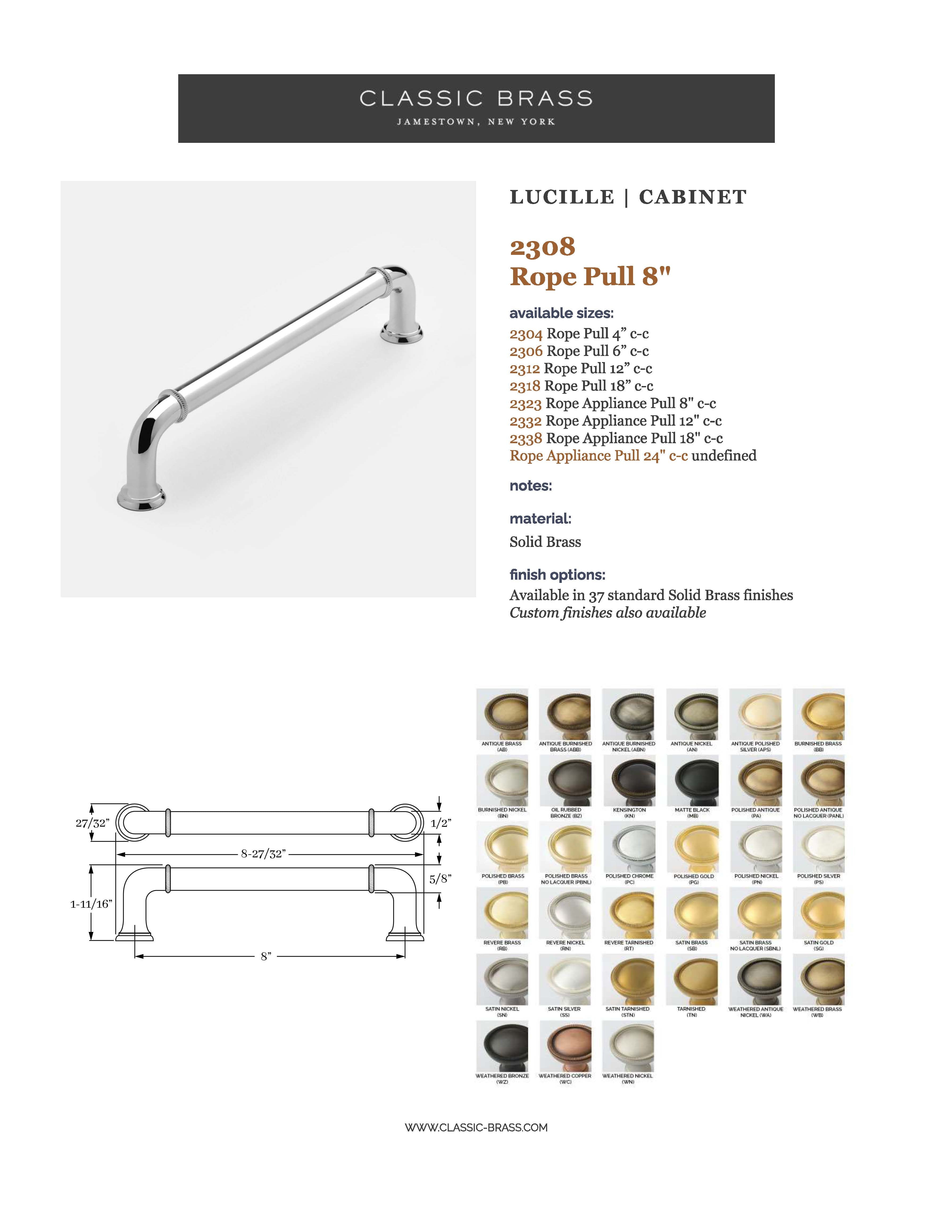 2308, Pull - Rope - 8" c-c, Classic Brass Lucille Collection