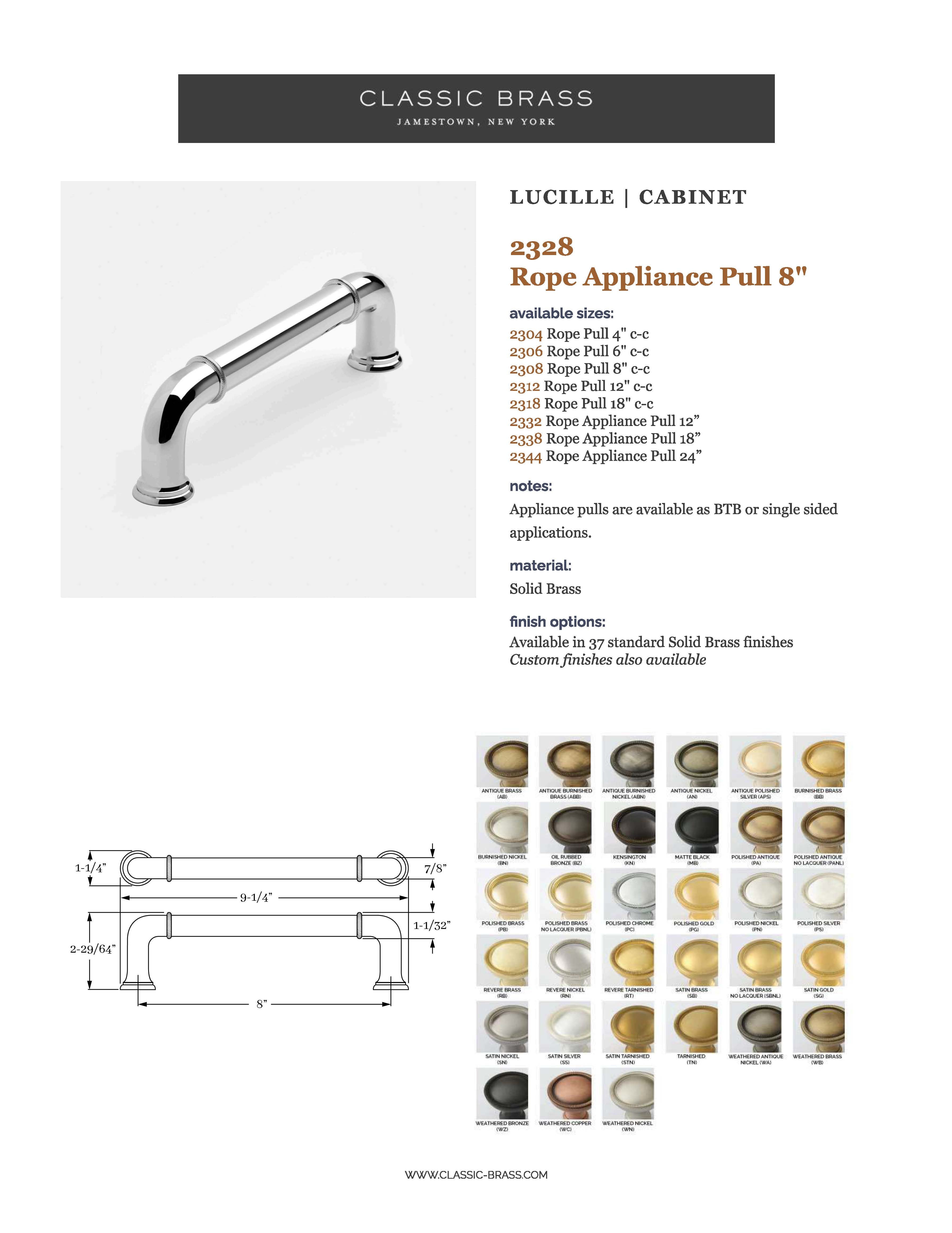 2318, Pull - Rope - 18" c-c, Classic Brass Lucille Collection