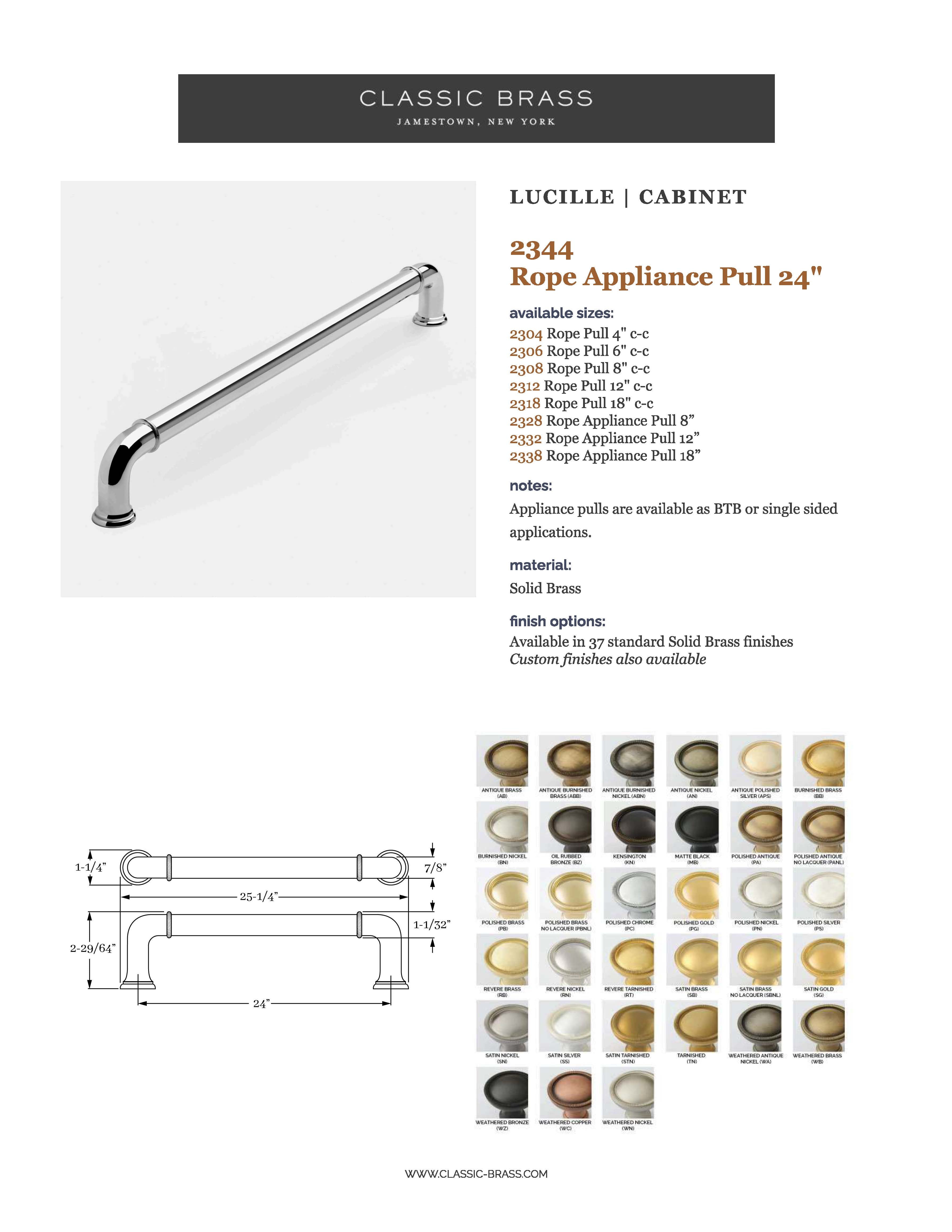 2344, Appliance Pull - Rope - 24" c-c, Classic Brass Lucille Collection