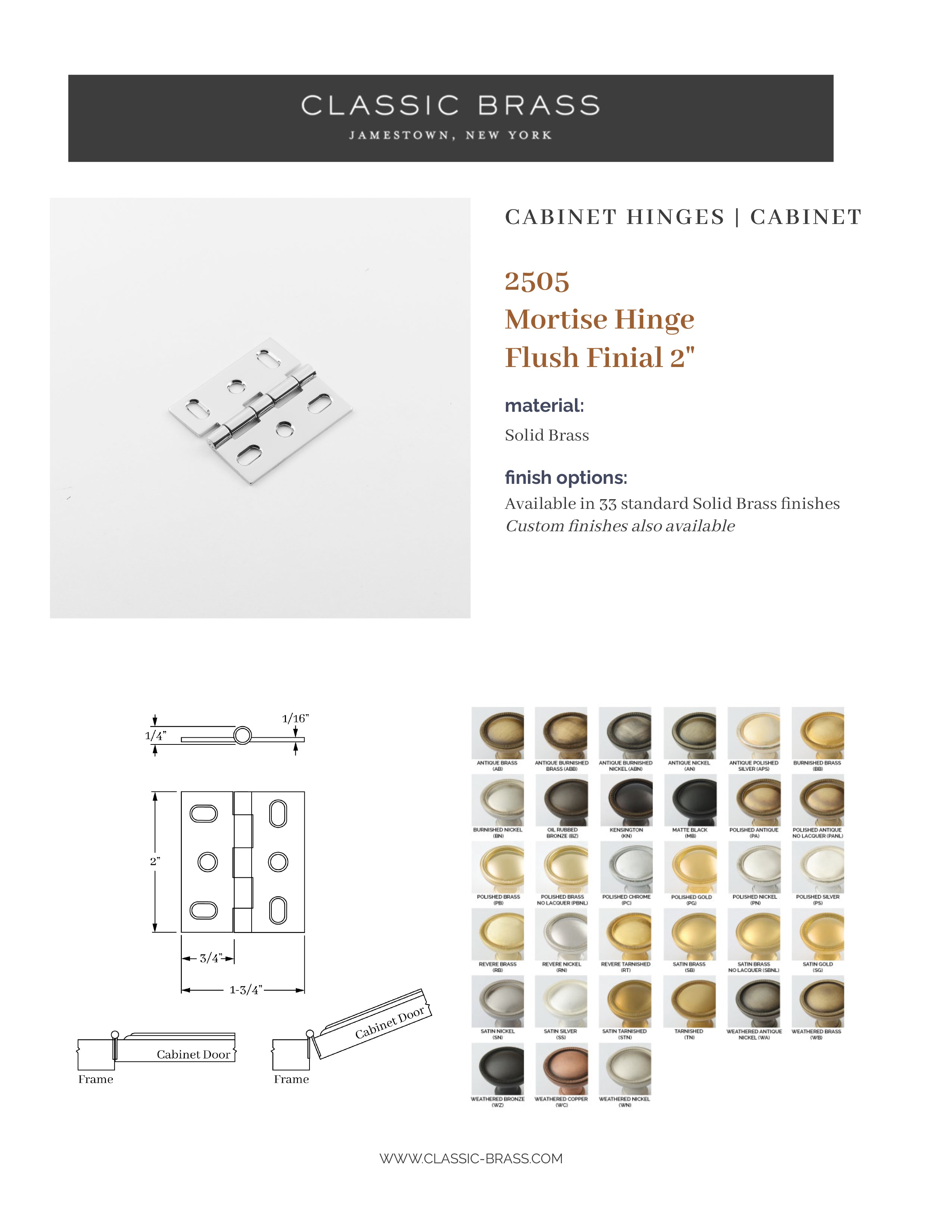2505, Hinge - Mortise - Flush, Classic Brass Hinges