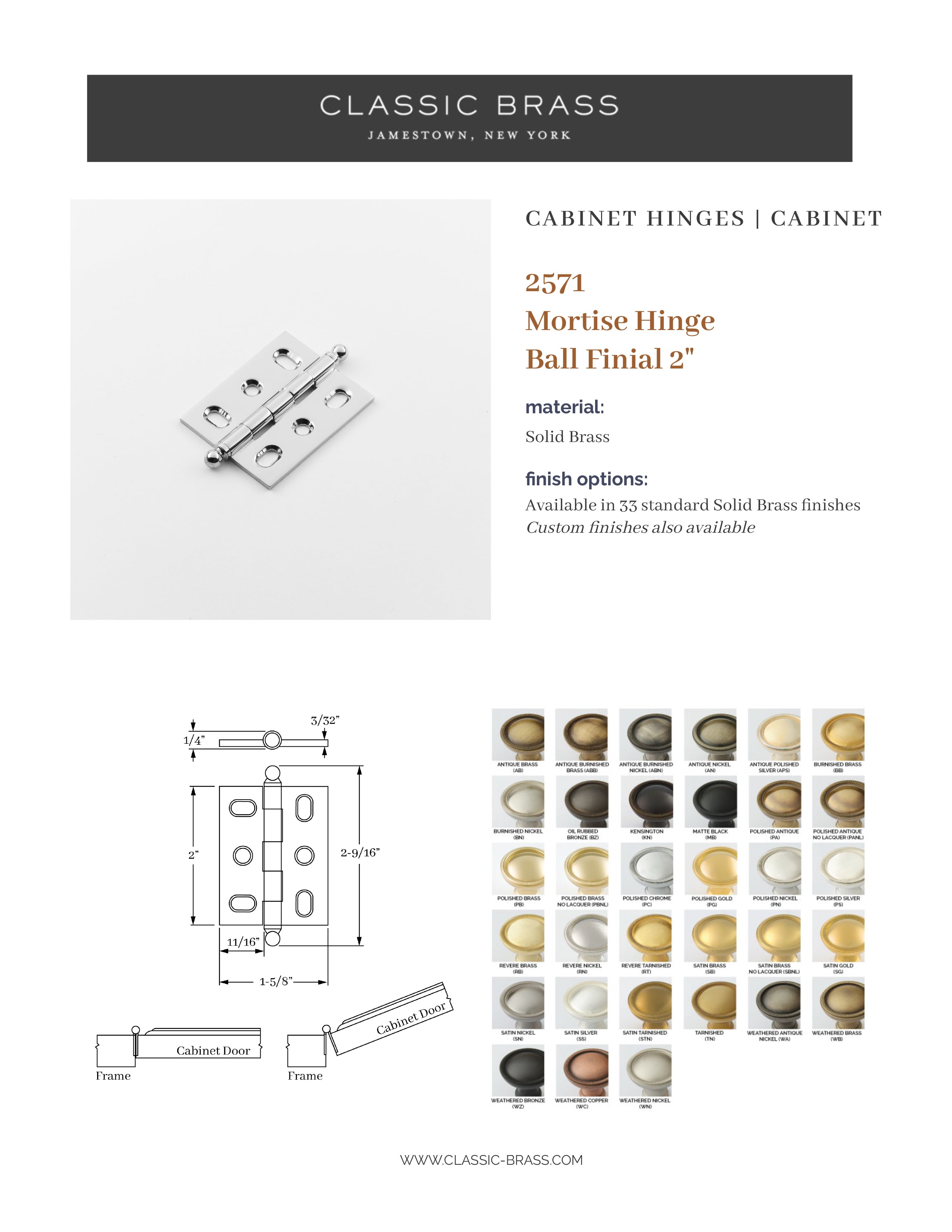 2571, Hinge - Mortise - Ball Finial, Classic Brass Hinges