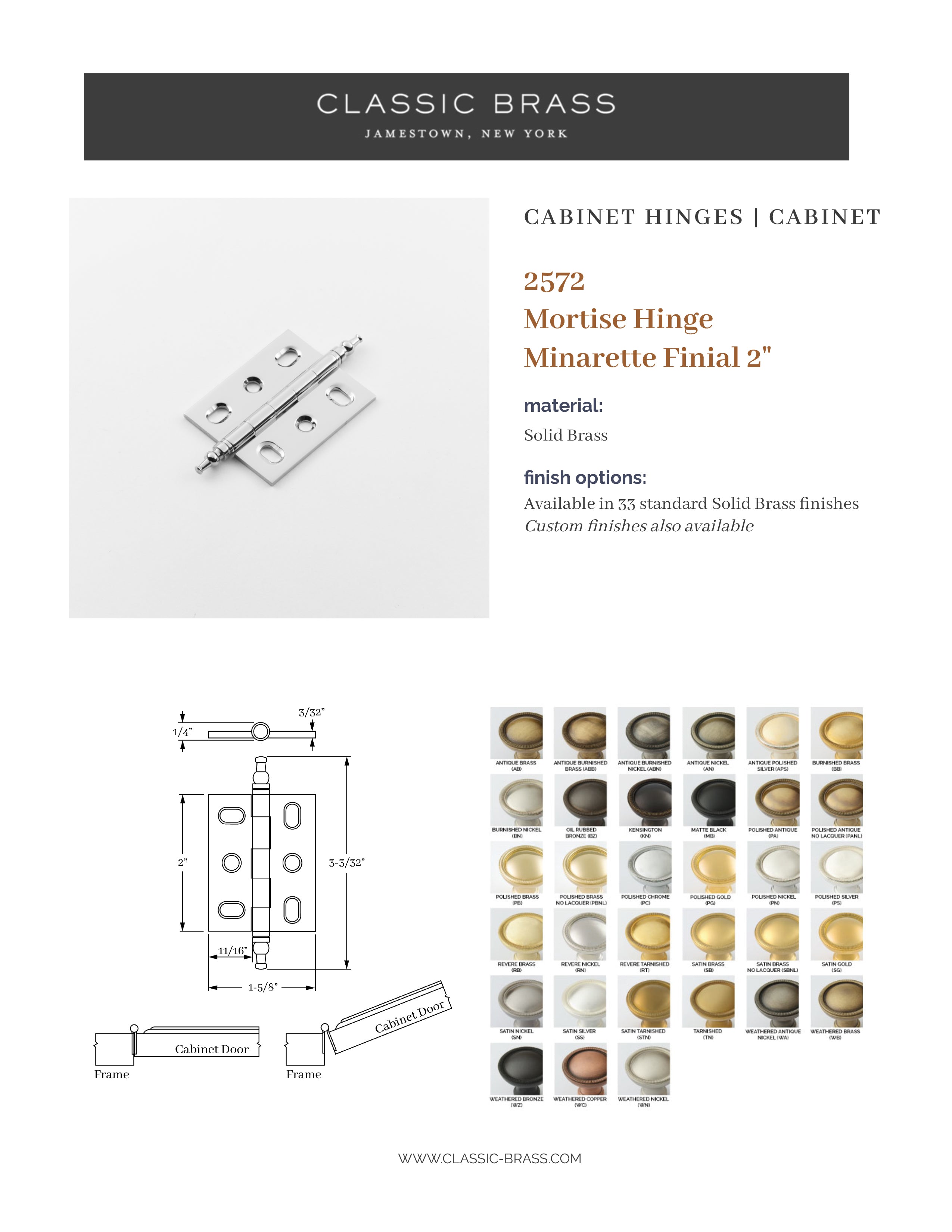 2572, Hinge - Mortise - Minarette Finial, Classic Brass Hinges