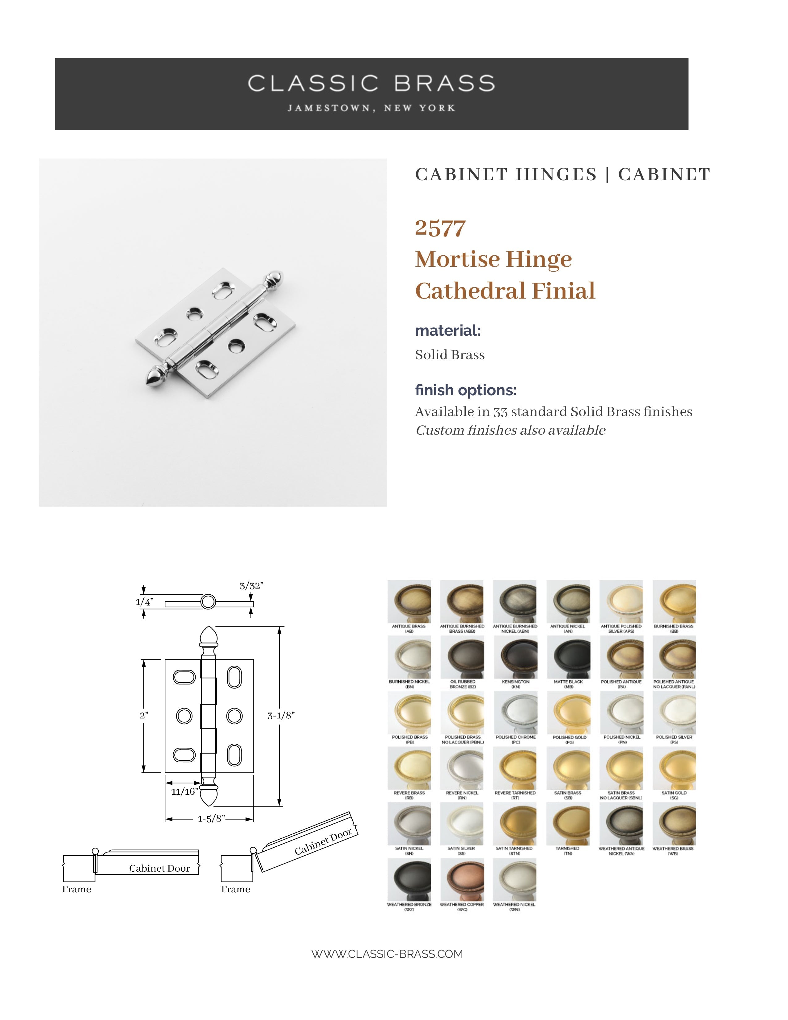 2582, Hinge - Non-Mortise - Minarette Finial, Classic Brass Hinges