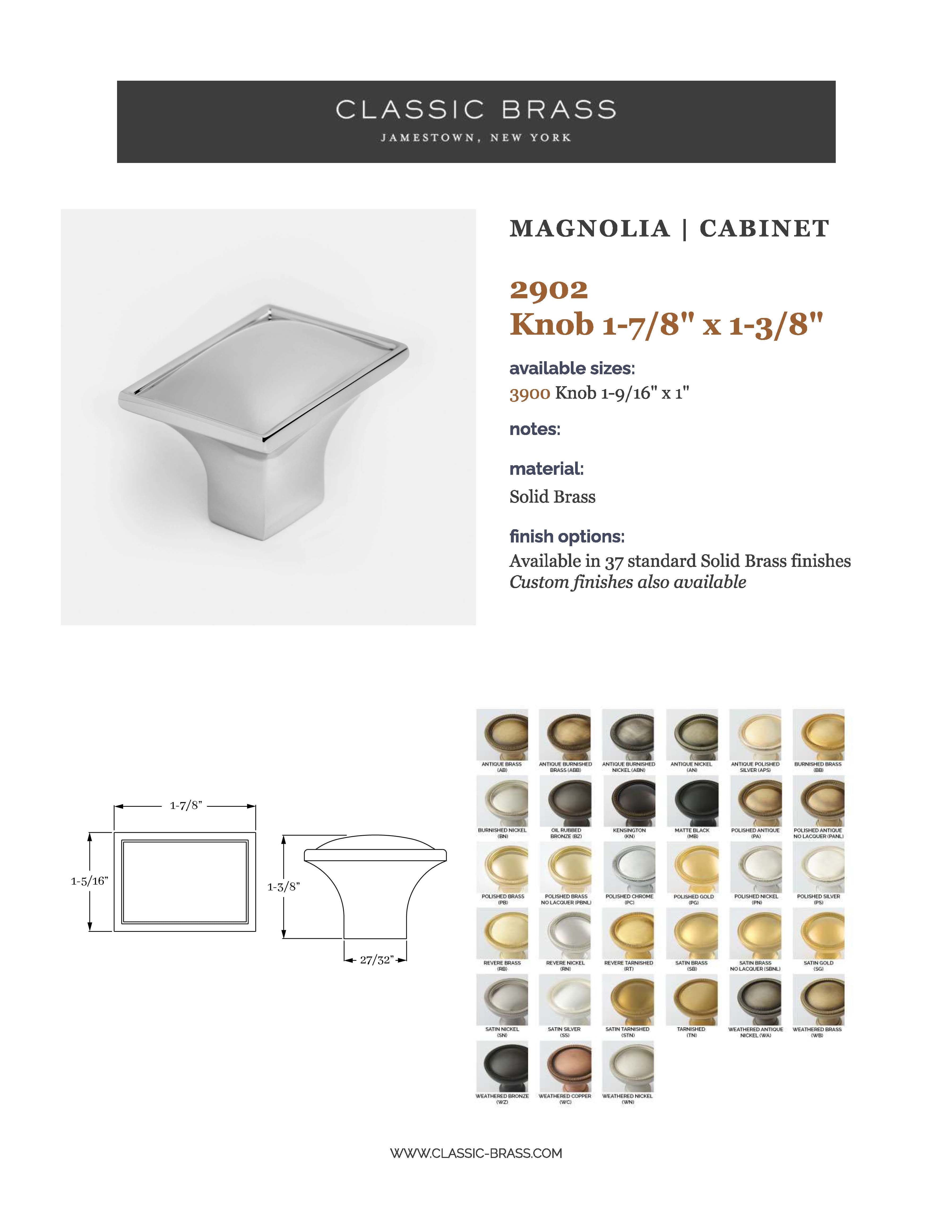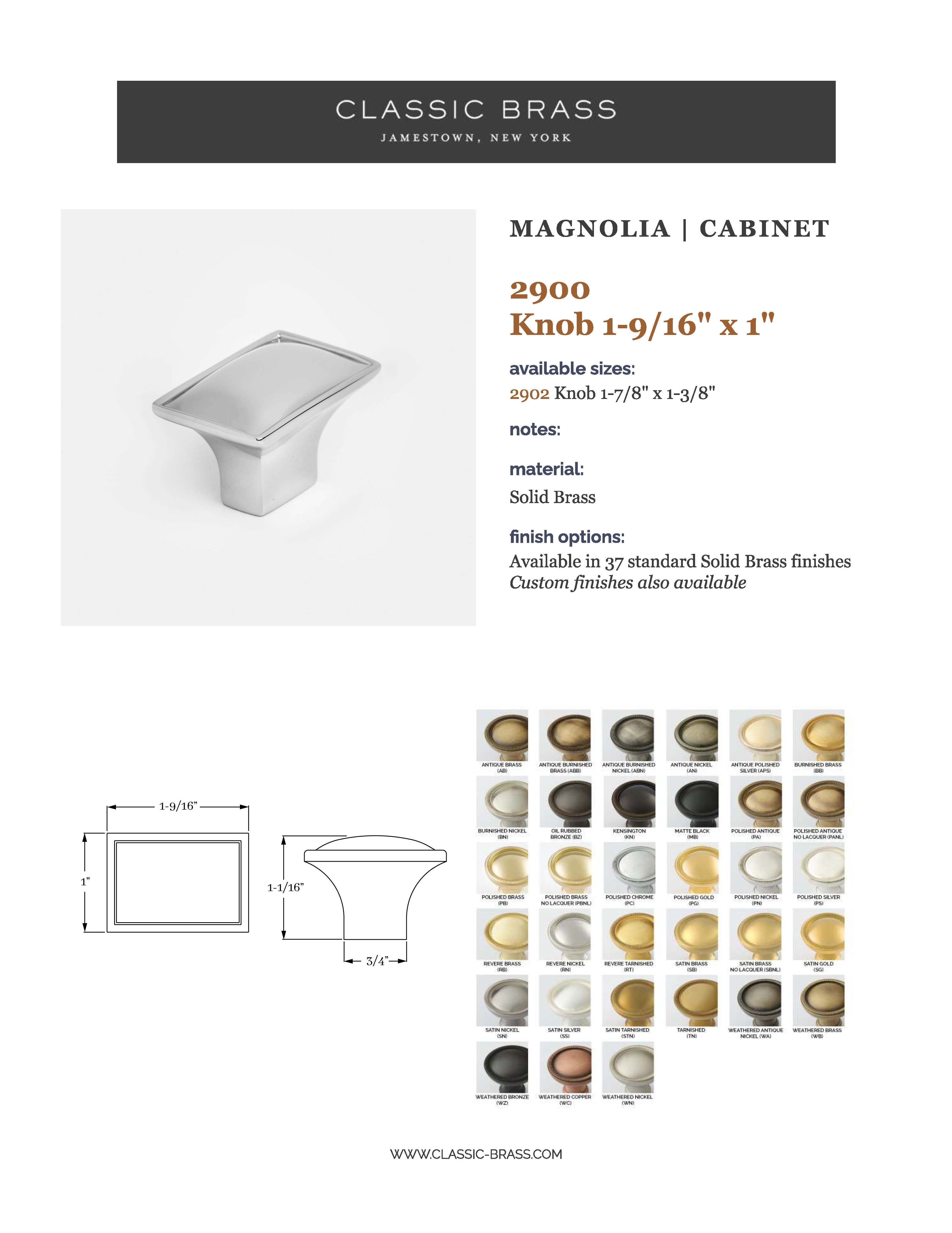 2902, Knob - 1-7/8" x 1-3/8", Classic Brass Collection