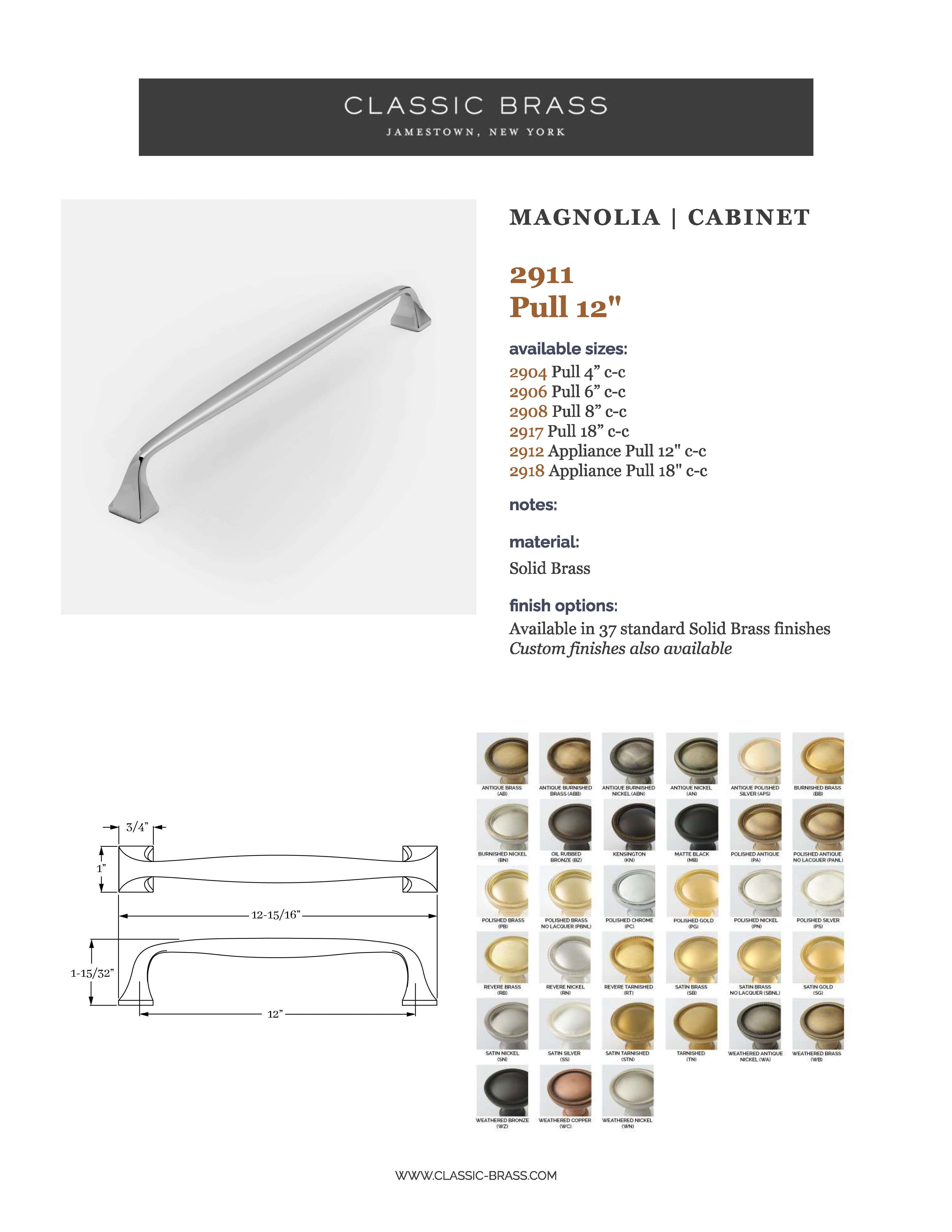 2911, Pull - 12" c-c, Classic Brass Magnolia Collection