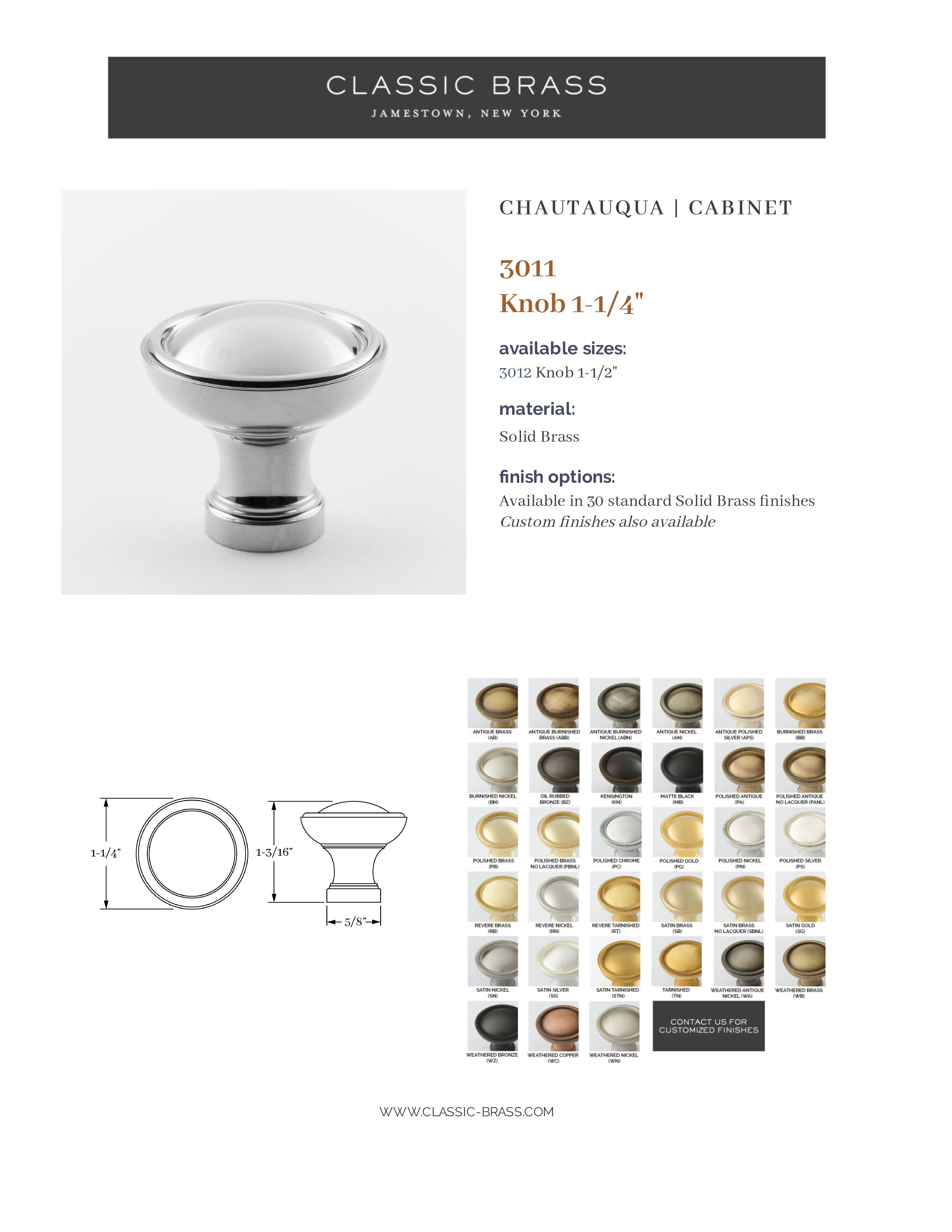 3011, Knob - 1-1/4", Classic Brass Chautauqua Collection
