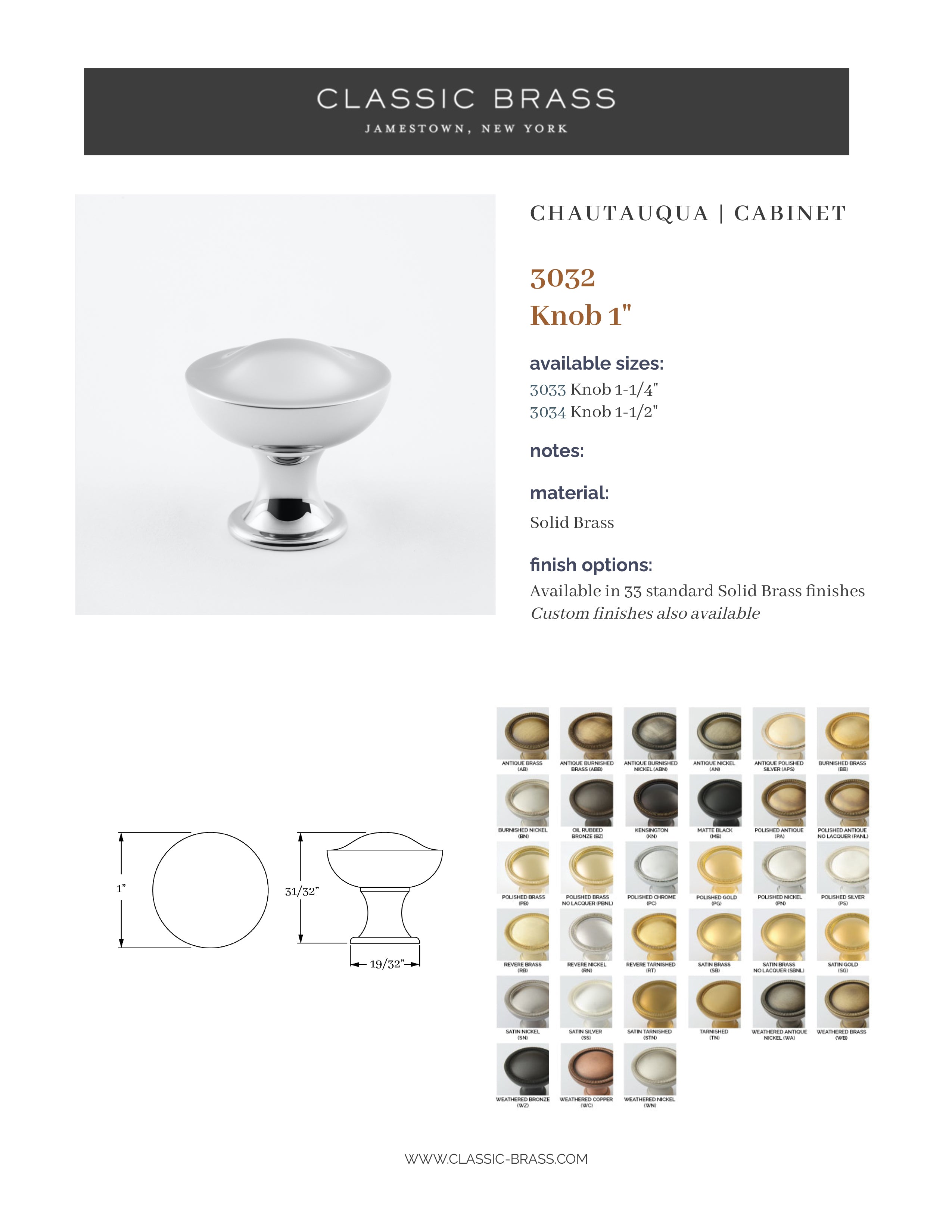 3032, Knob - 1", Classic Brass Chautauqua Collection