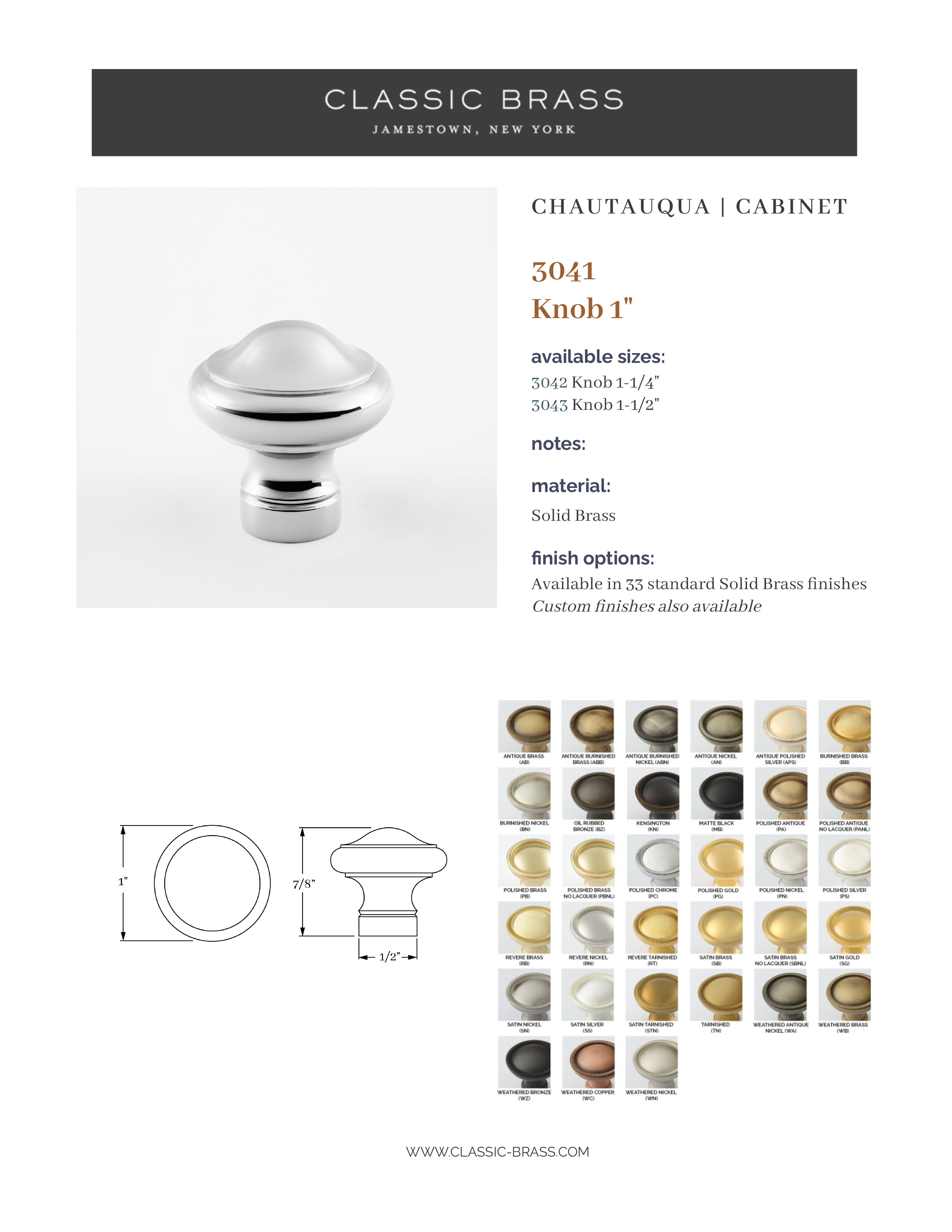 3041, Knob - 1", Classic Brass Chautauqua Collection