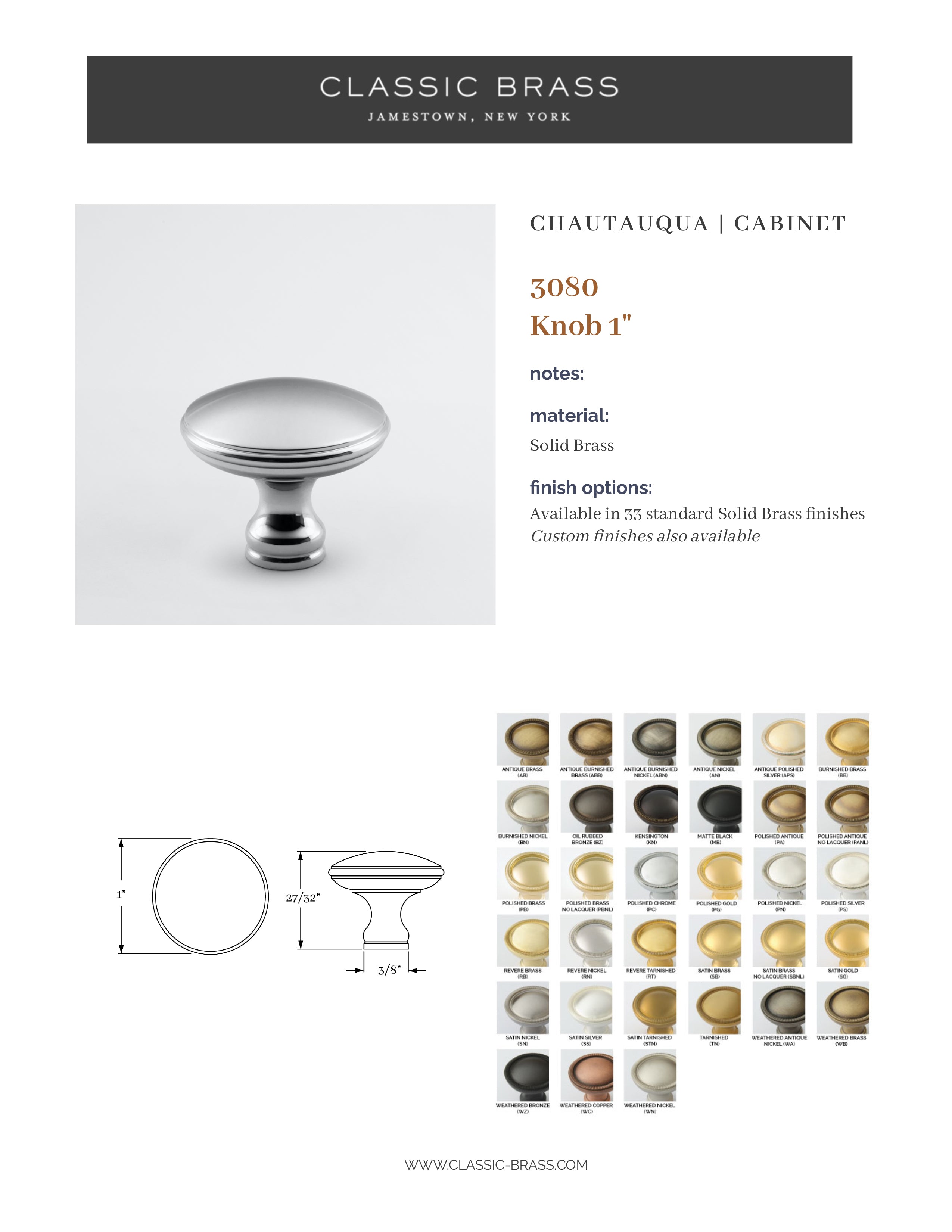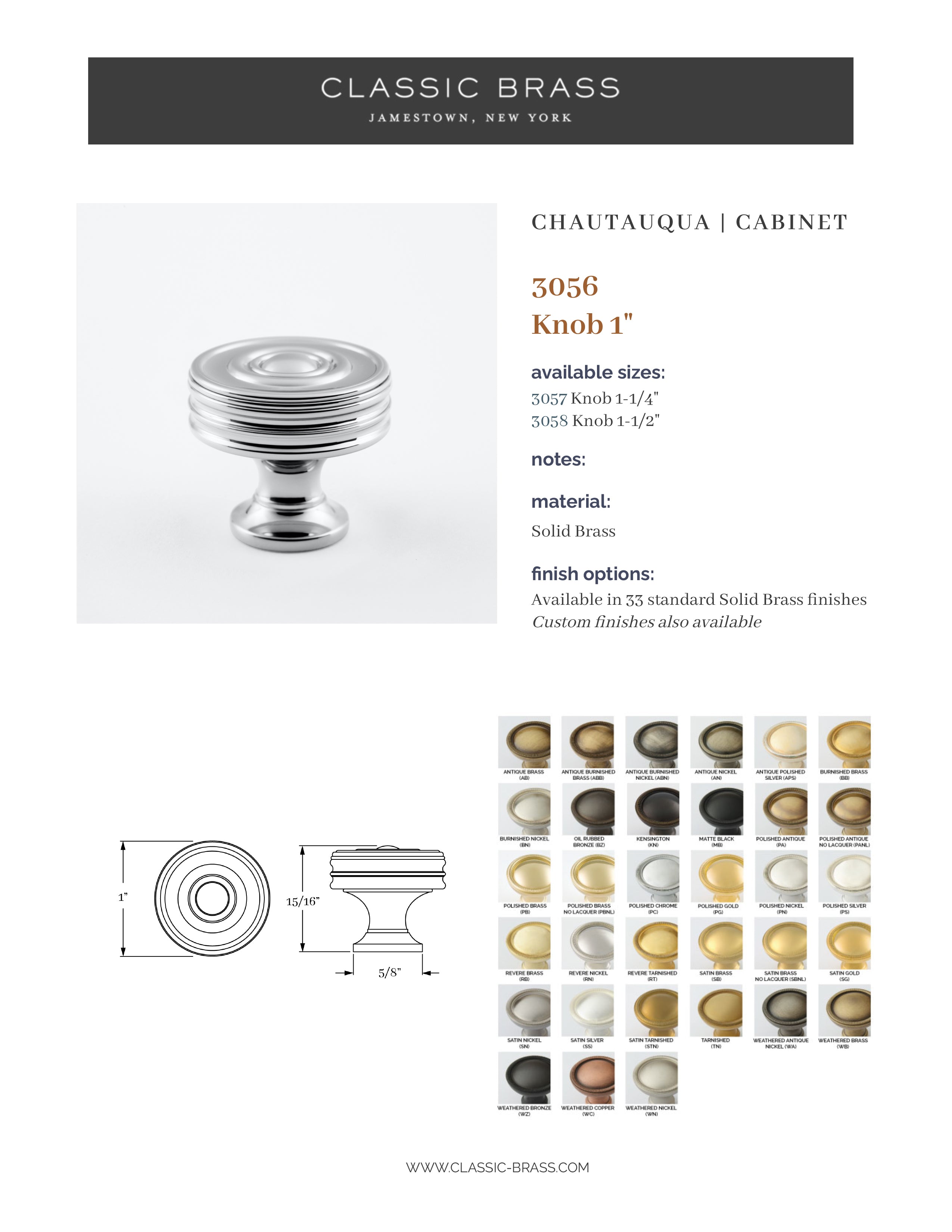 3056, Knob - 1", Classic Brass Chautauqua Collection