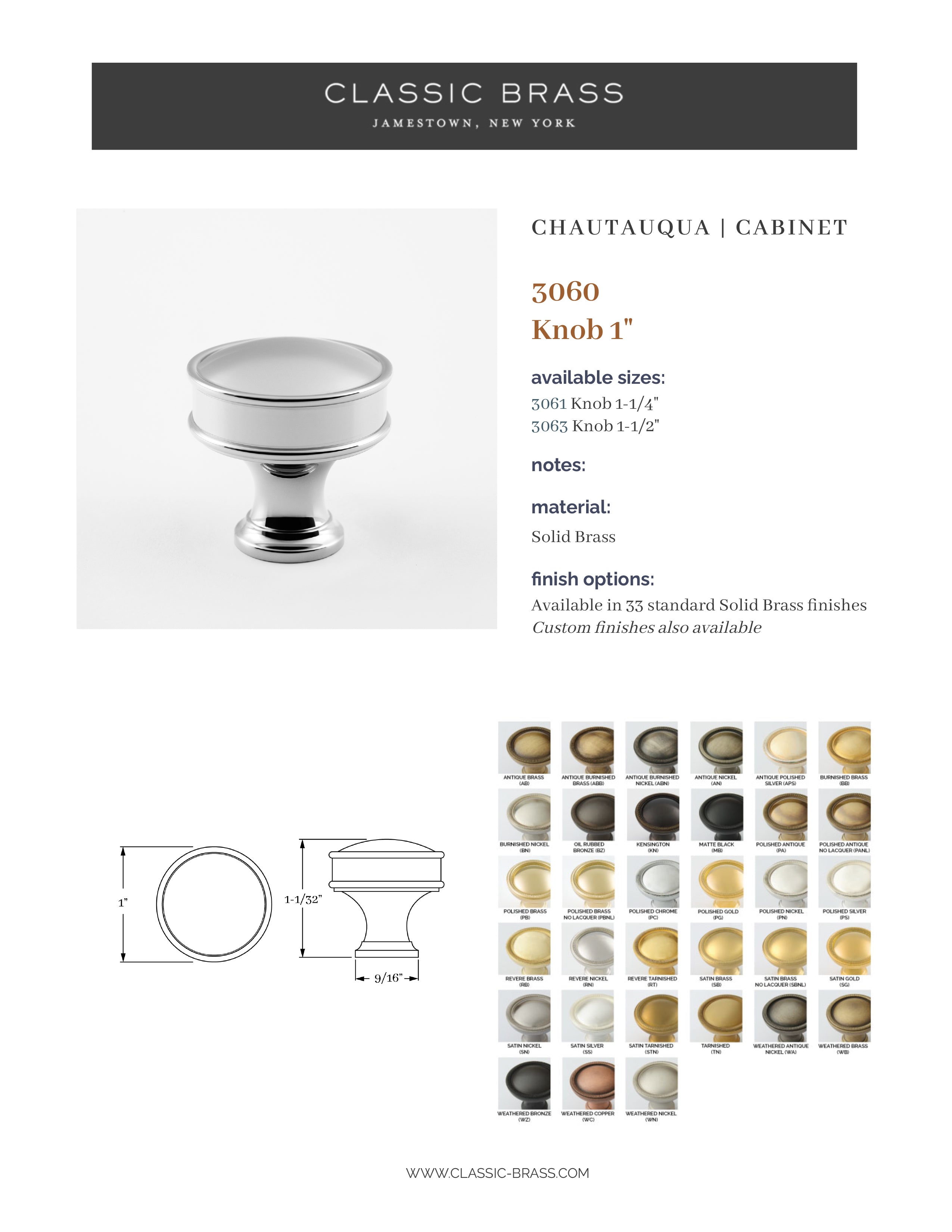 3060, Knob - 1", Classic Brass Chautauqua Collection