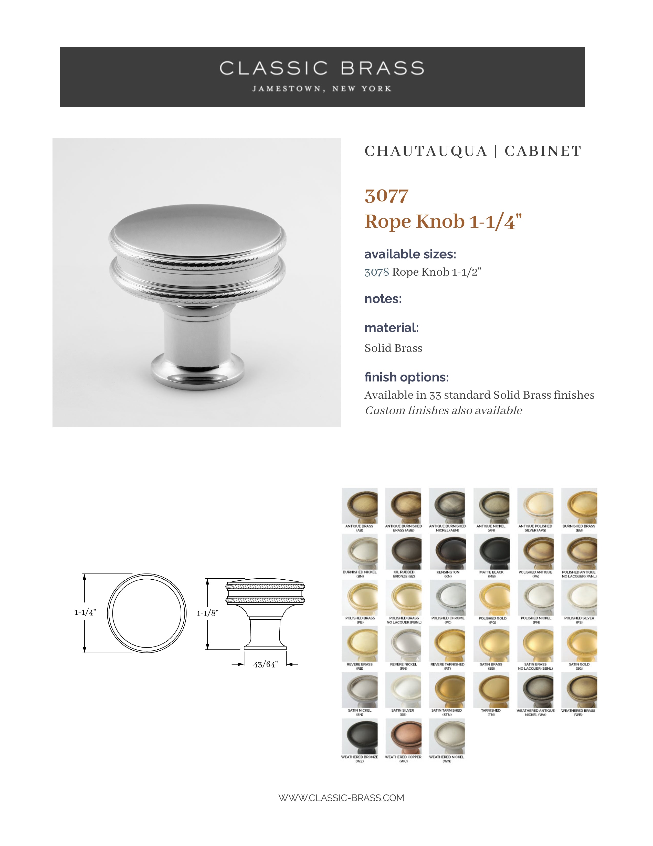3043, Knob - 1-1/2", Classic Brass Chautauqua Collection