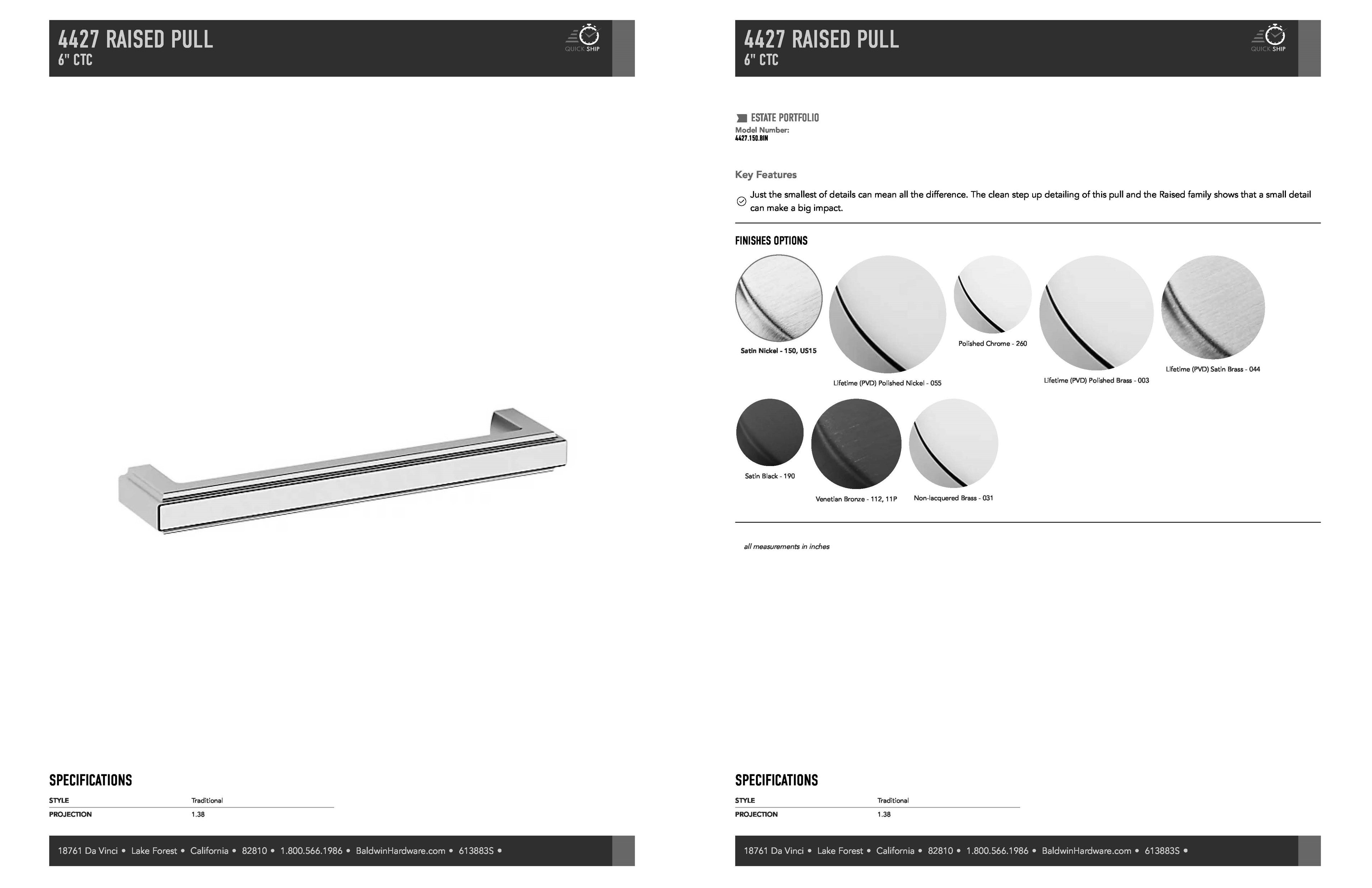 4427, Raised Pull - 6" CTC x 1.38" p., BH