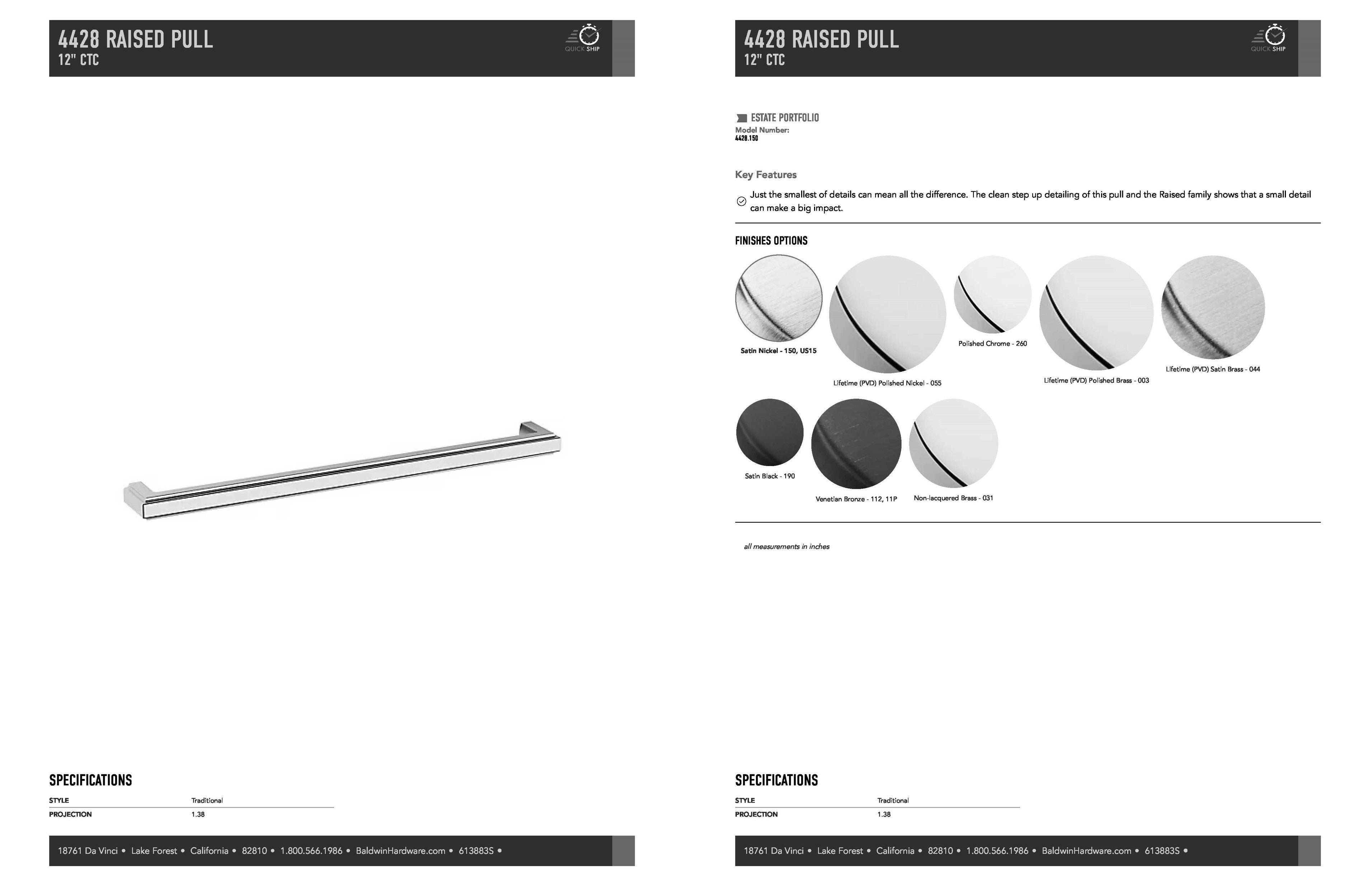 4428, Raised Pull - 12" CTC x 1.38" p., BH