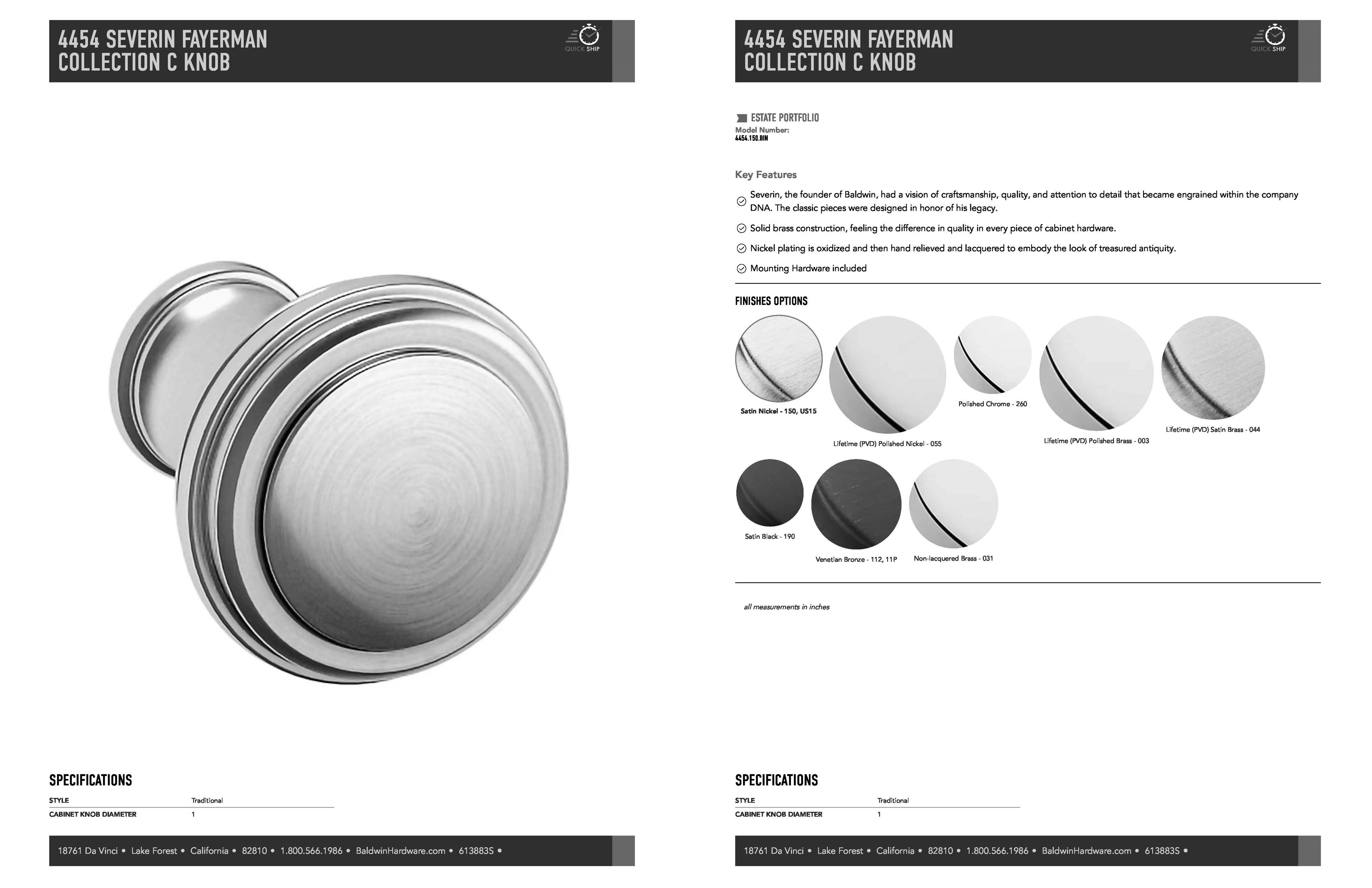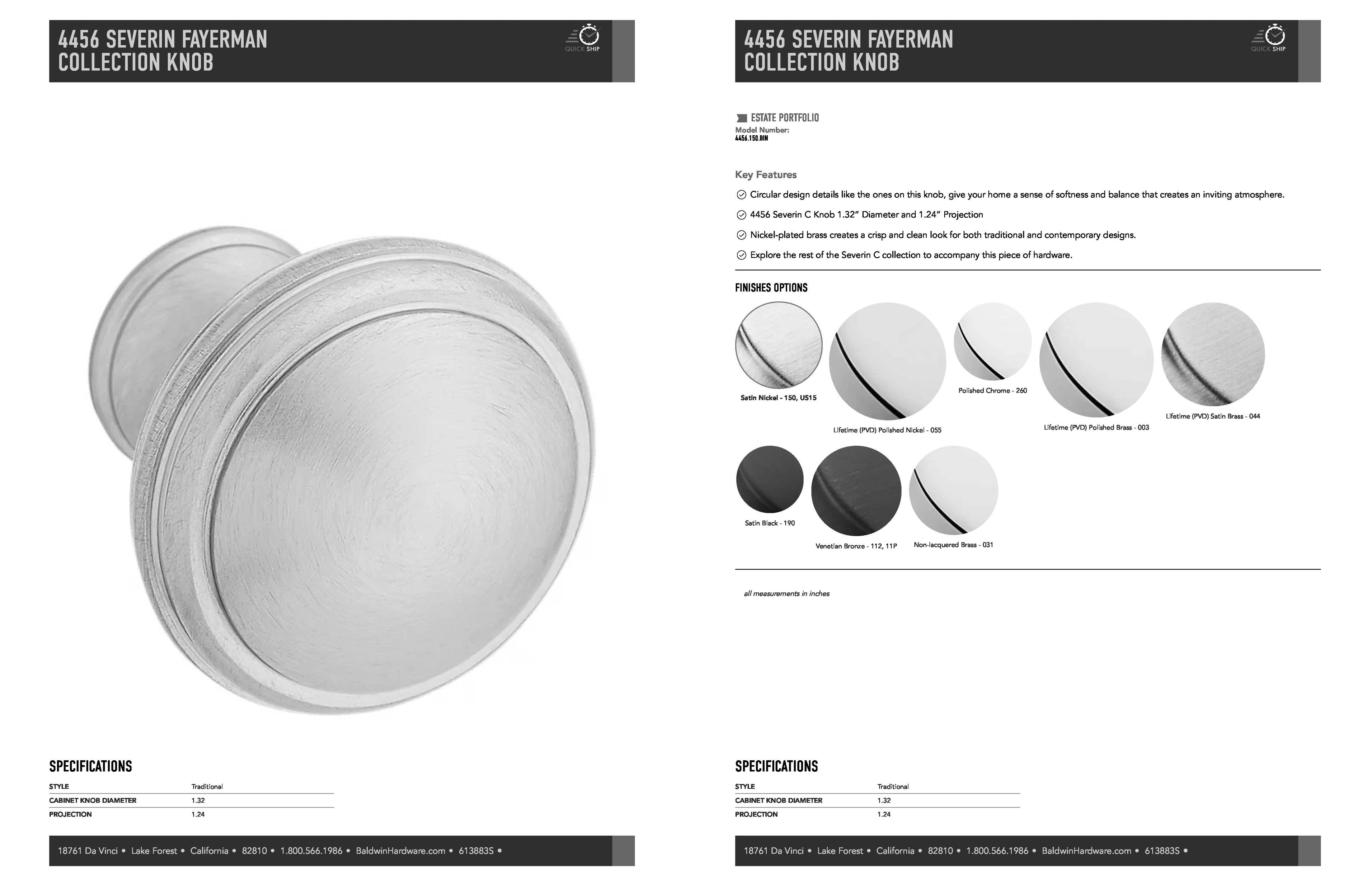 4456, Severin C Knob - 1.32" d. x 1.24" p., BH Severin Collection