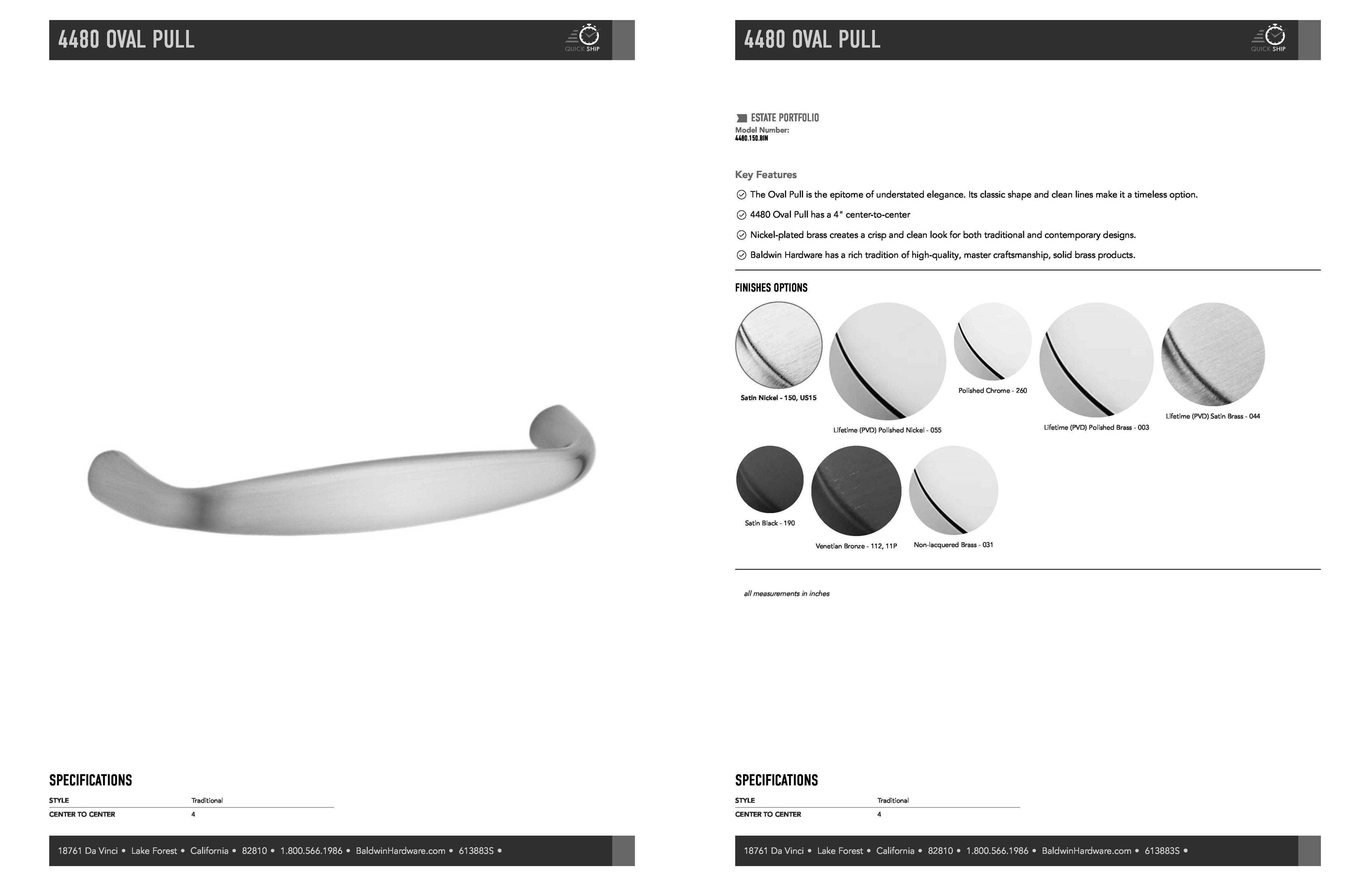 4480, Oval Pull - 4" CTC x 1.2" p., BH
