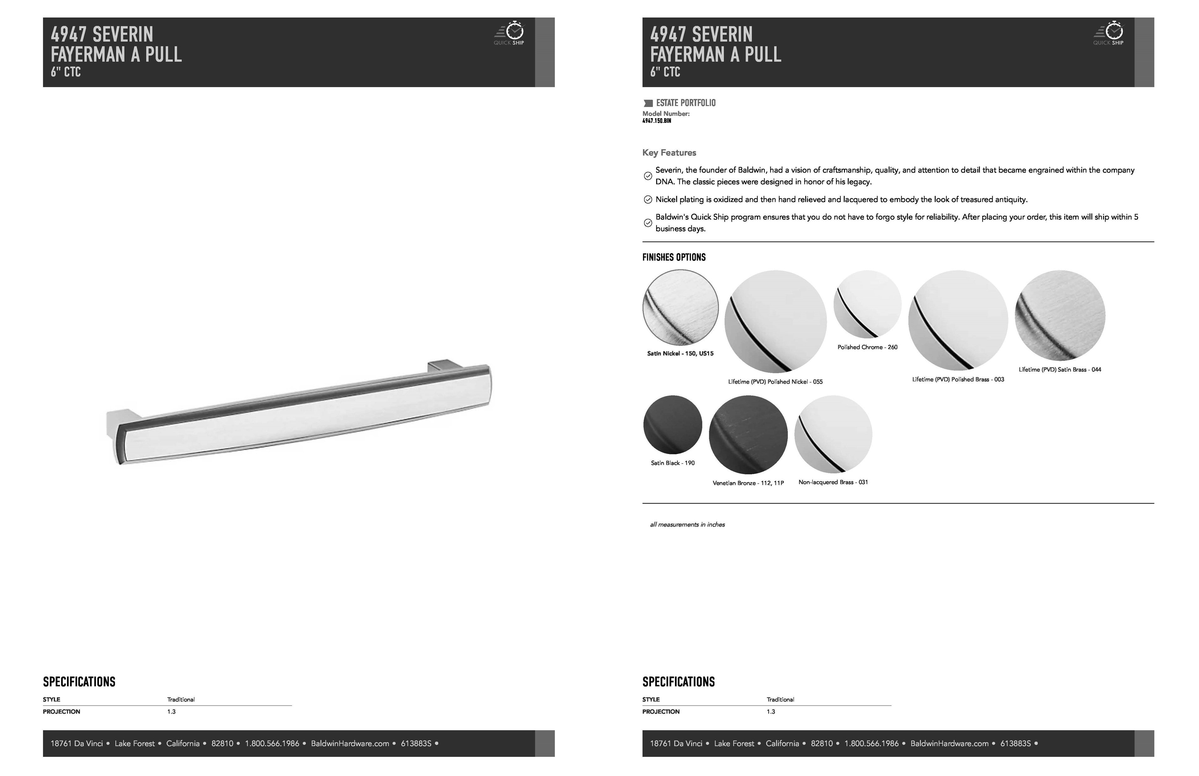 4947, Severin A Pull - 6" CTC x 1.3" p., BH Severin Collection
