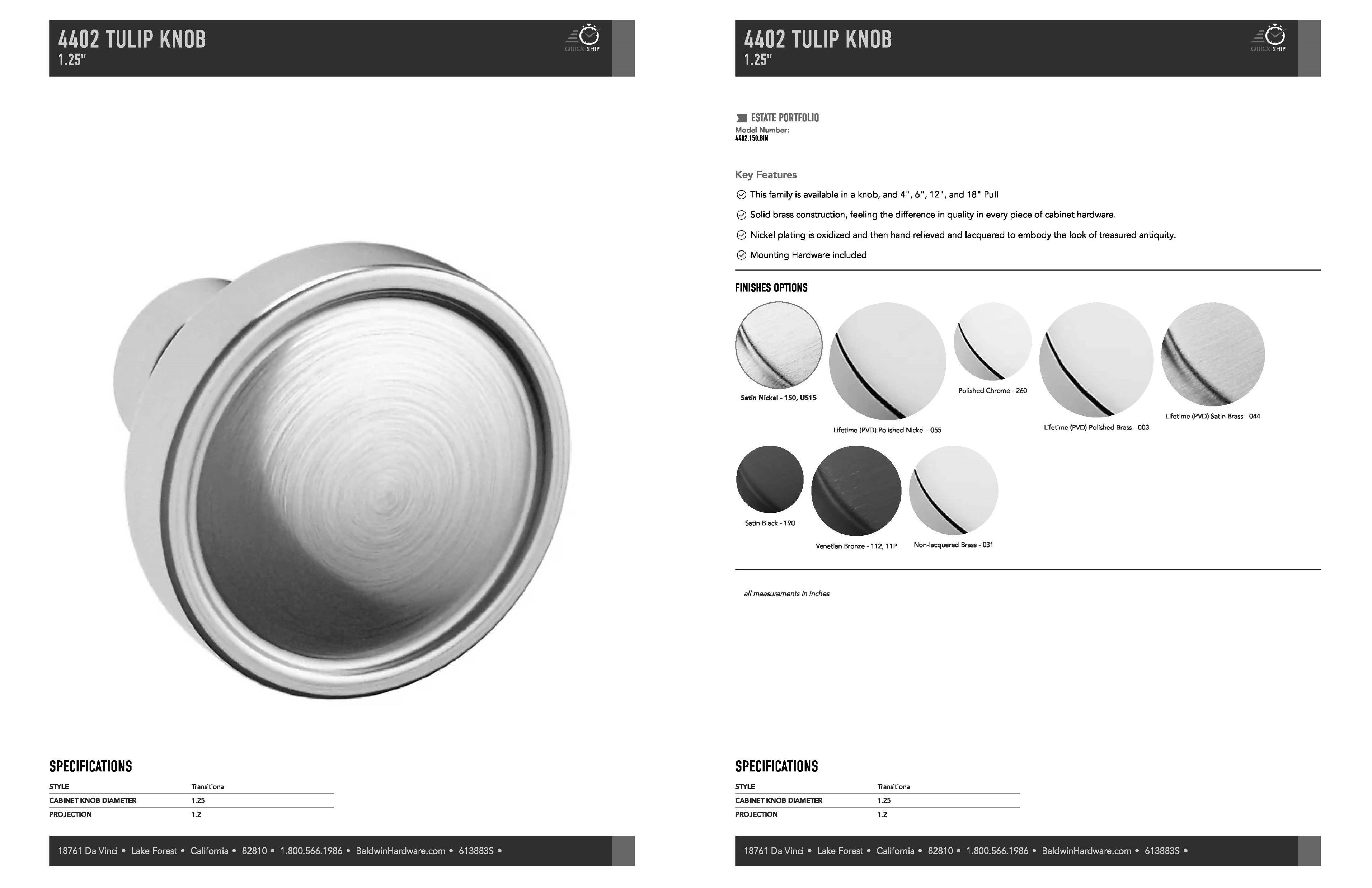 4402, Tulip Knob - 1.25"d. x 1.2" p., BH Tulip Collection